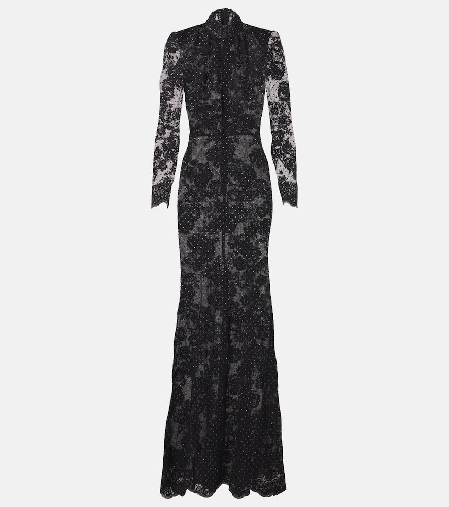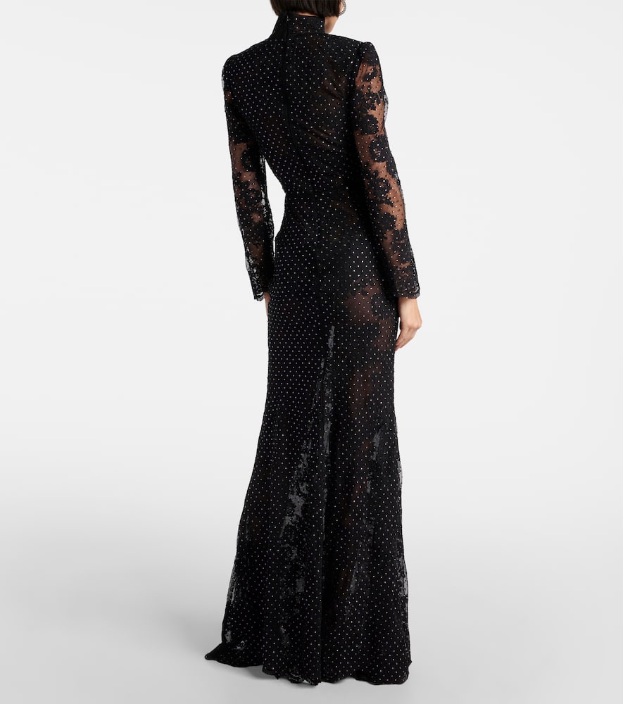 Material: 88.8% polyester, 4.8% viscose, 4.1% polyamide, 2.3% cotton. Care instructions: dry clean. Made in China. Designer color name: Black. Lining: 87% polyester, 13% elastane. Closure: zipped back. Shop the latest Self-Portrait Maxi Dresses for women.