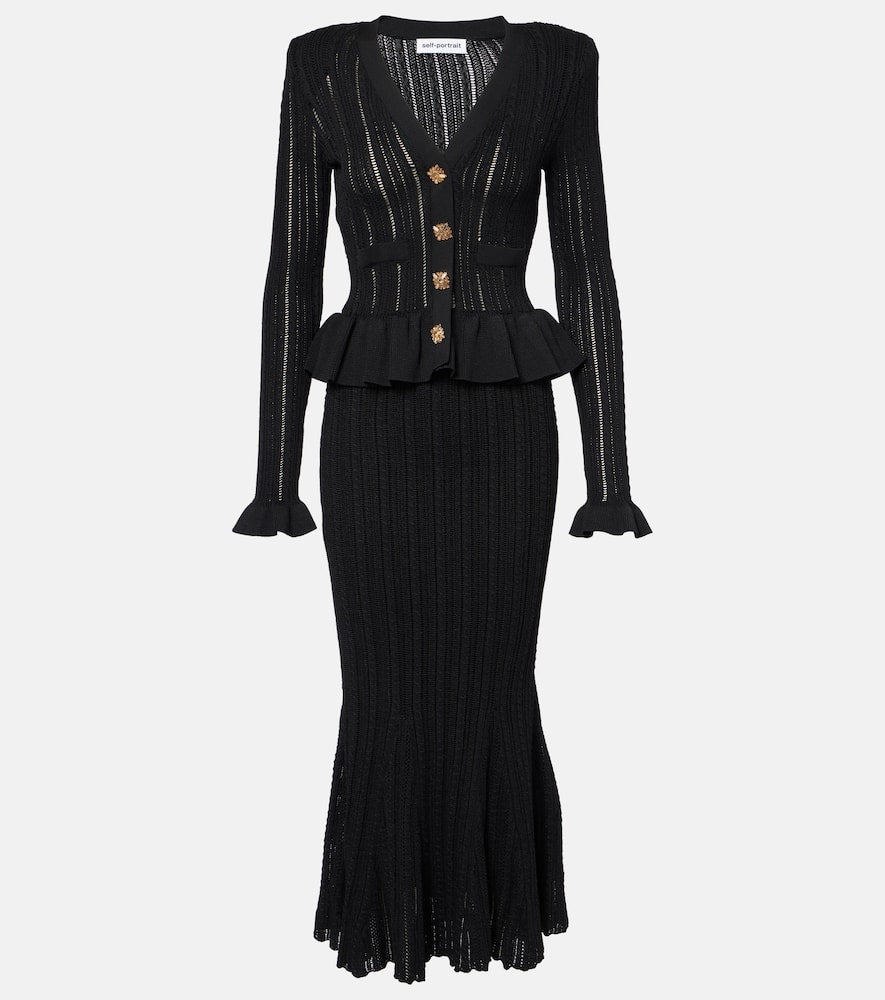 Material: 59% viscose, 40% polyamide, 1% elastane. Care instructions: dry clean. Made in China. Designer color name: Black. Material II: 55% viscose, 40% polyamide, 5% polyester. Lining: 54% viscose, 43% polyamide, 3% elastane. Closure: snap-buttoned front. Shop the latest Self-Portrait Maxi Dresses for women.