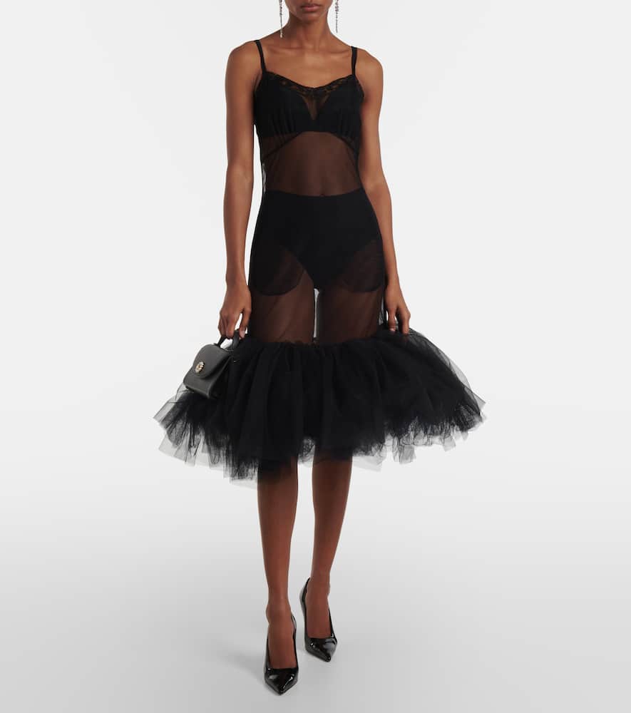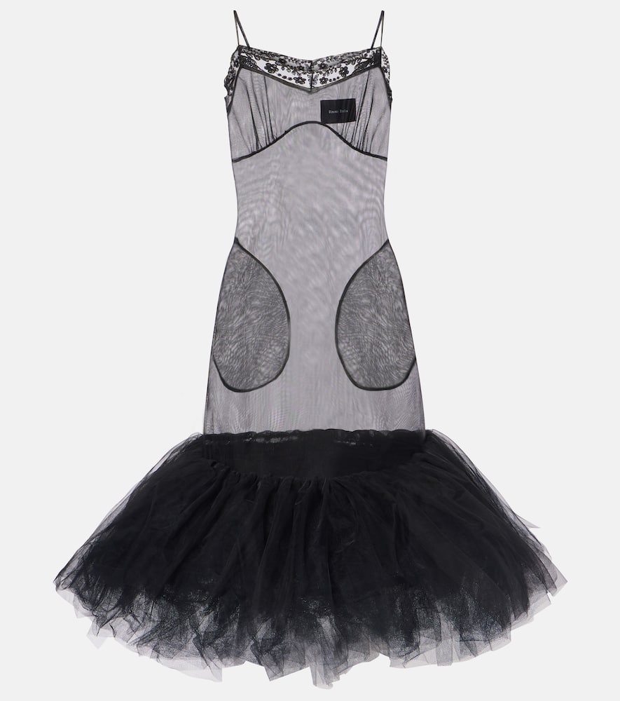 Material: 100% polyamide. Care instructions: machine wash at 30 degrees. Made in Portugal. Designer color name: Black. Closure: concealed zipper. Material II: 100% nylon. Material III: 100% viscose. Trim: 100% polyamide. Shop the latest Simone Rocha Midi Dresses for women.