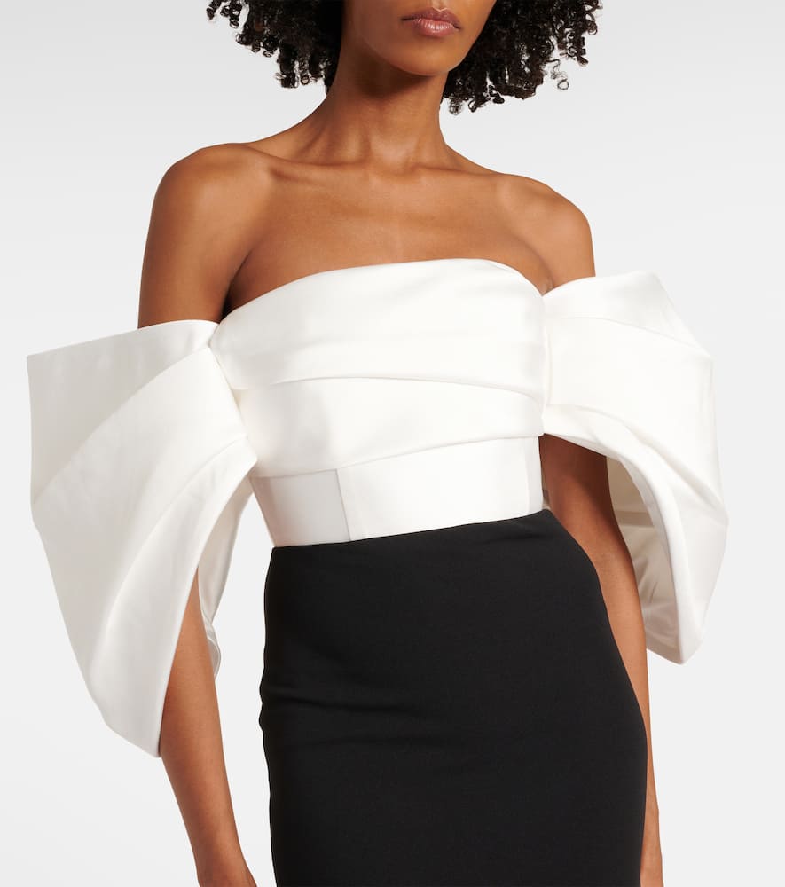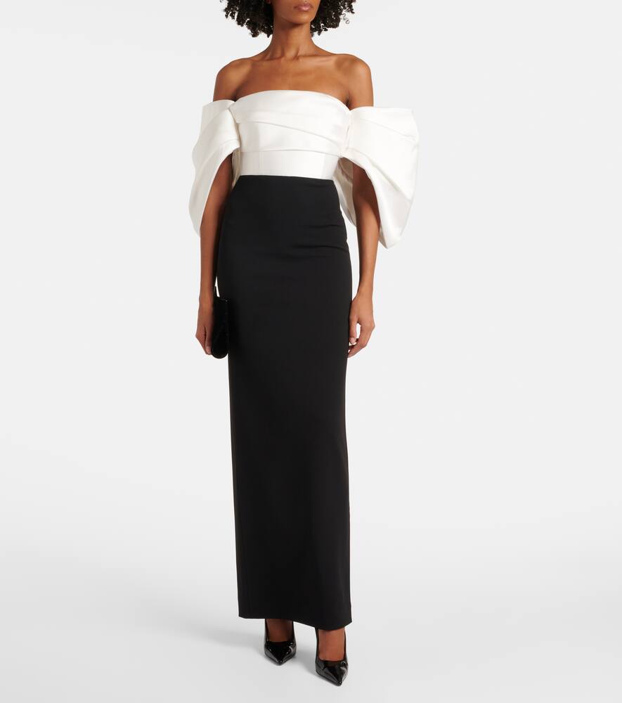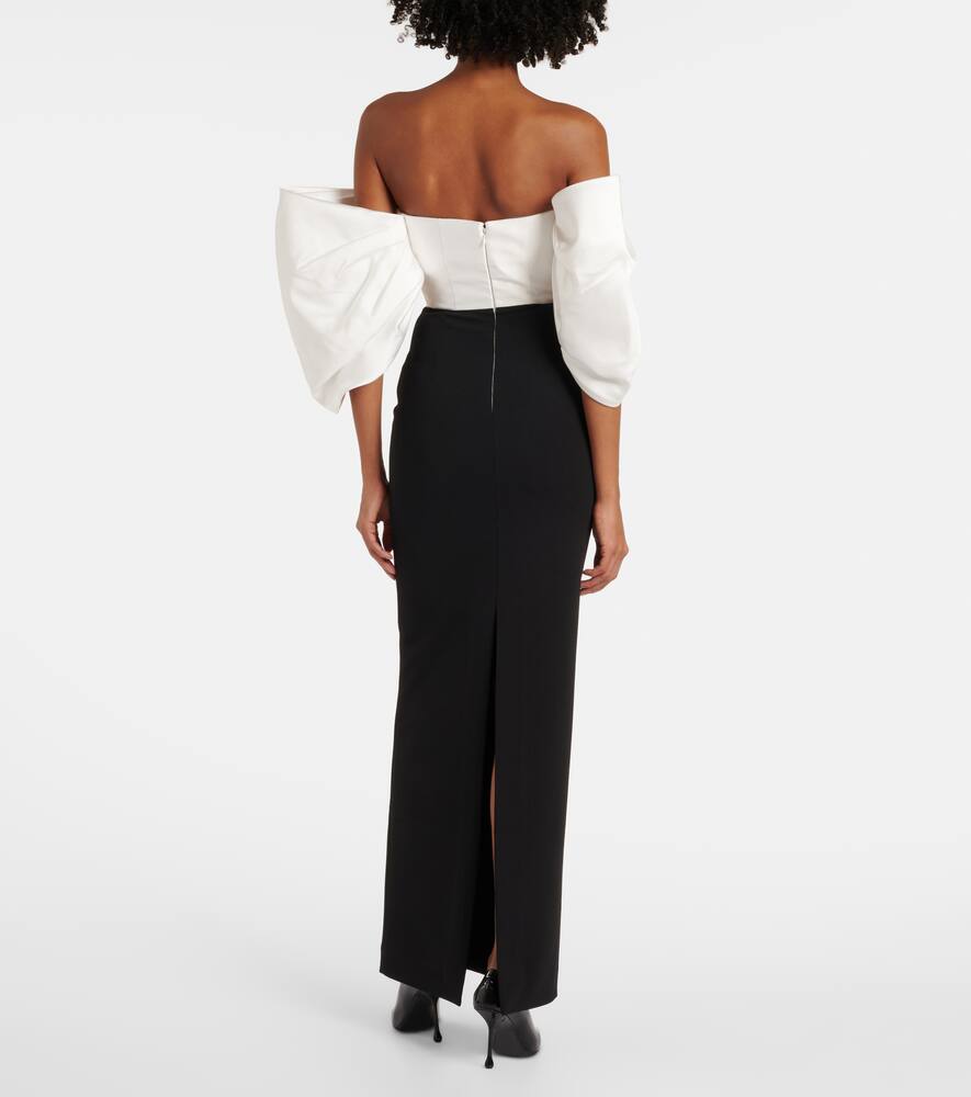Solace London Arla off-shoulder twill & crêpe gown