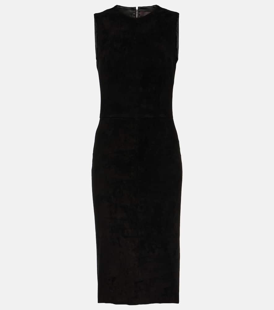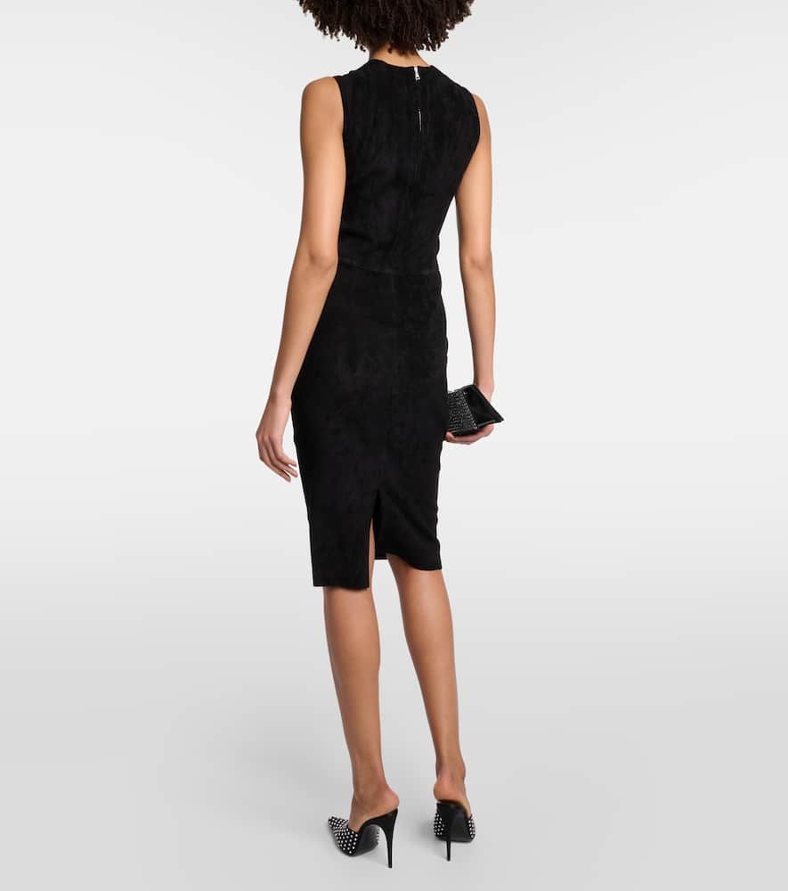 Material: 100% lamb leather. Care instructions: specialist clean. Made in Portugal. Designer color name: Noir. Material II: 97% cotton, 2.4% lyocell, 0.6% elastane. Partially lined. Lining: 95% silk, 5% elastane. Closure: zipped back. Shop the latest Stouls Midi Dresses for women.