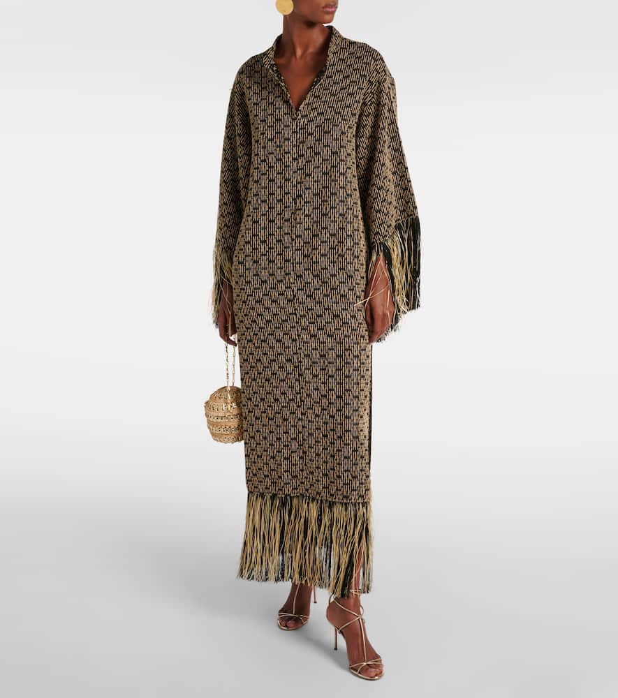 Material: 34% viscose, 28% cotton, 25% polyester, 13% polyamide. Care instructions: dry clean. Made in Italy. Designer color name: Black-Ecru. Trim: 100% viscose. Pockets: side slit pockets. Shop the latest Taller Marmo Maxi Dresses for women.