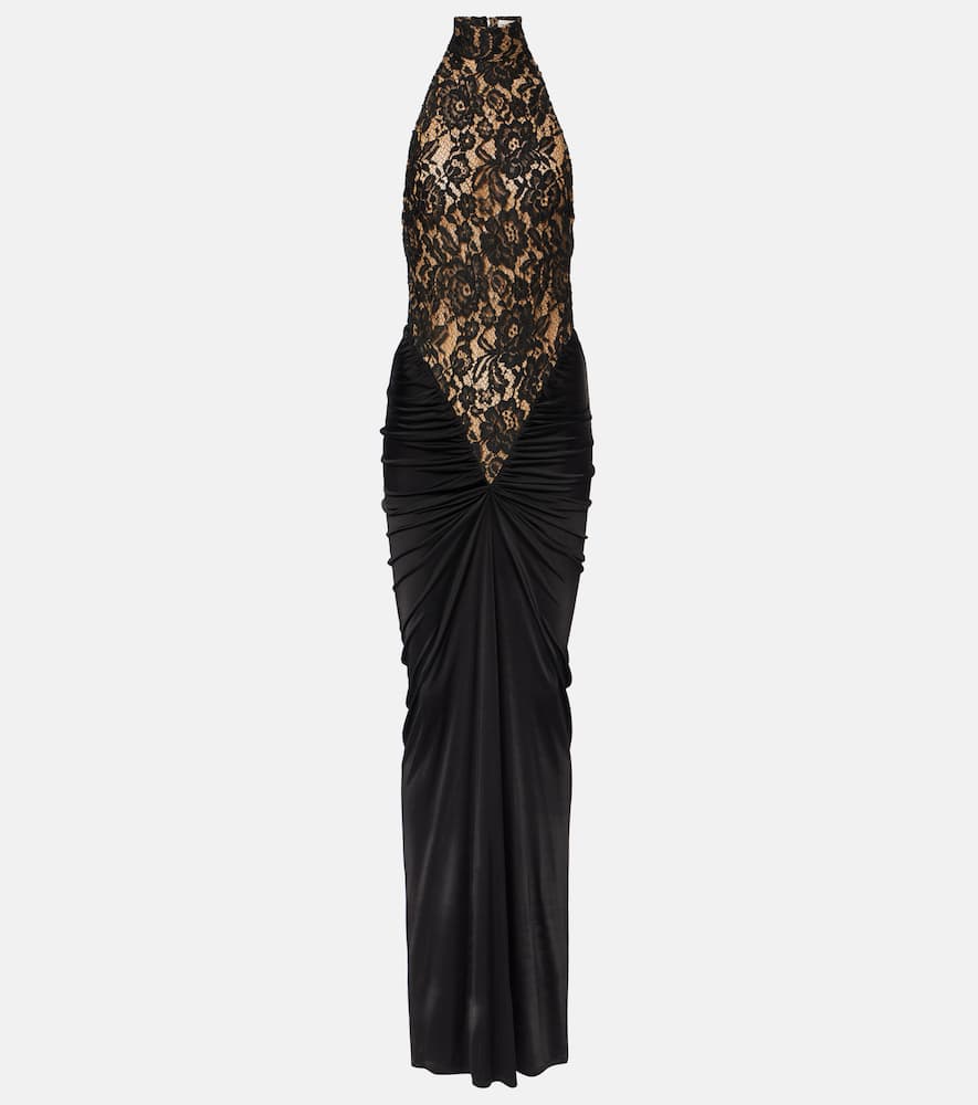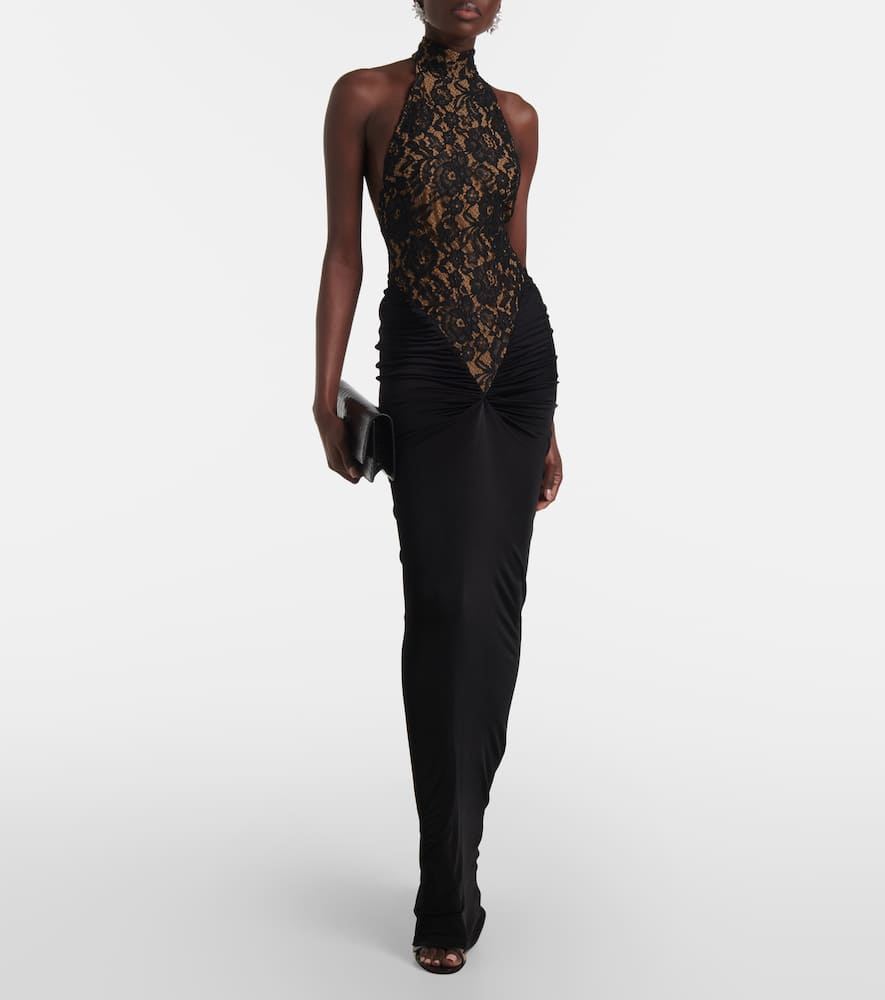 The New Arrivals Ilkyaz Ozel Cass lace-trimmed ruched halterneck gown