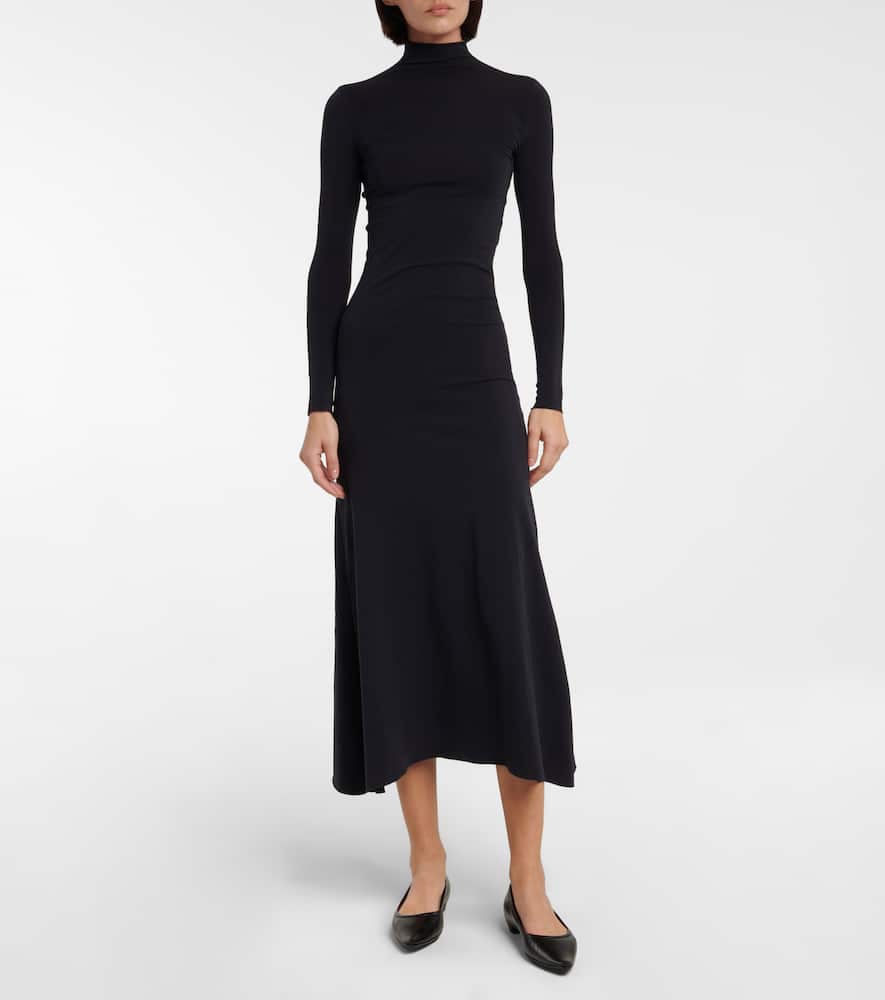 Made in Italy. Material: 81% polyamide, 19% elastane. Care instructions: machine wash cold. Designer color name: Black. Shop the latest The Row Midi Dresses for women.