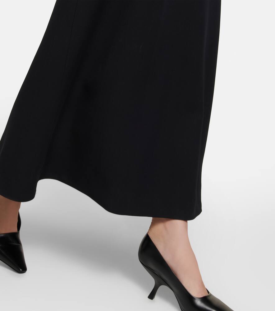 Material: 59% silk, 41% wool. Care instructions: dry clean. Made in Italy. Designer color name: Black. Pocket lining: 100% silk. Pockets: side slit pockets. Closure: hook fastening. Shop the latest The Row Maxi Dresses for women.