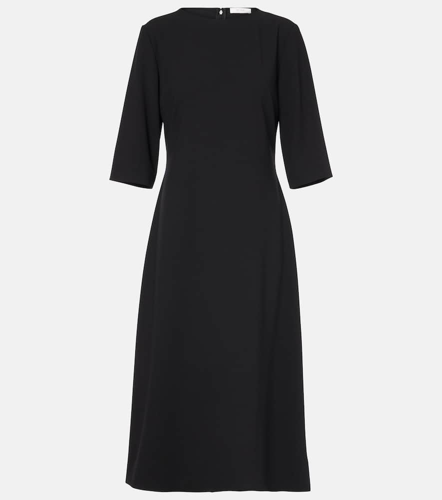 Material: 96% wool, 4% elastane. Care instructions: dry clean. Made in Italy. Designer color name: Black. Closure: invisible zipper. Shop the latest The Row Midi Dresses now.
