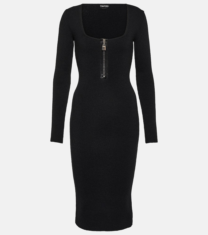 Material: 97% wool, 3% polyamide. Care instructions: dry clean. Made in Italy. Designer color name: Black. Shop the latest Tom Ford Midi Dresses for women.