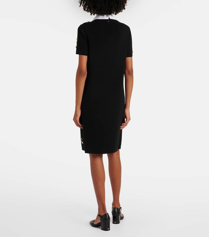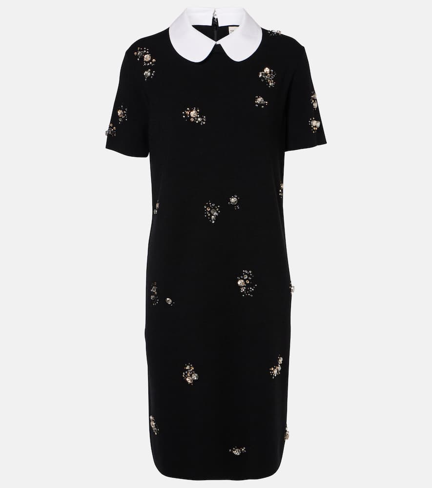 Material: 85% wool, 13% polyamide, 2% elastane. Care instructions: dry clean. Made in China. Designer color name: Black. Closure: concealed zipper. Detachable collar. Shop the latest Tory Burch Midi Dresses for women.