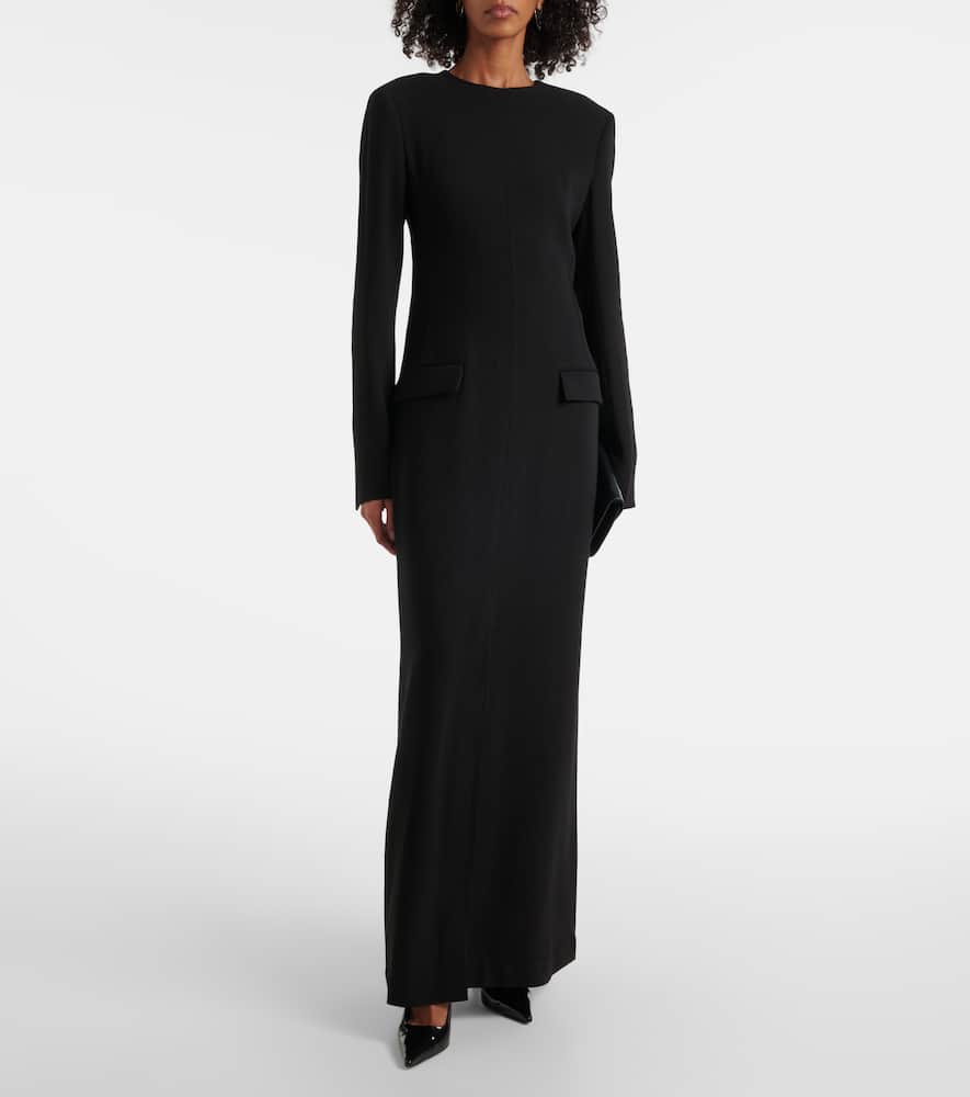 Material: 77% viscose, 23% wool. Care instructions: dry clean. Made in Portugal. Designer color name: Black. Lining: 100% viscose. Closure: zipped back. Shop the latest Toteme Maxi Dresses for women.