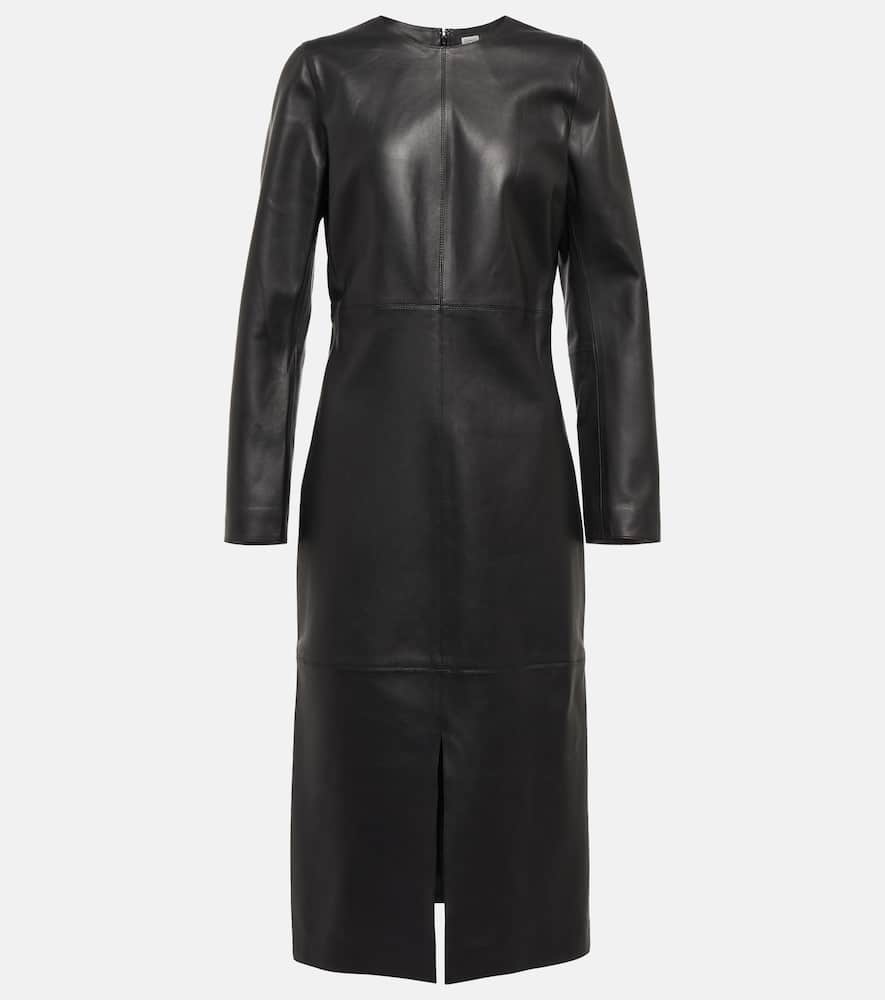 Material: 100% lamb leather. Closure: zipped back, invisible zipper. Care instructions: specialist clean. Designer color name: Black. Made in Turkey. Contains non-textile parts of animal origin. Shop the latest Toteme Midi Dresses for women.