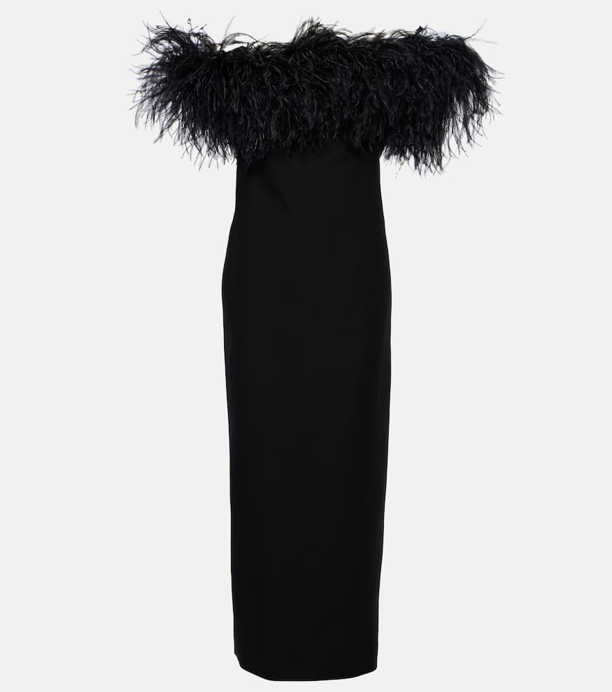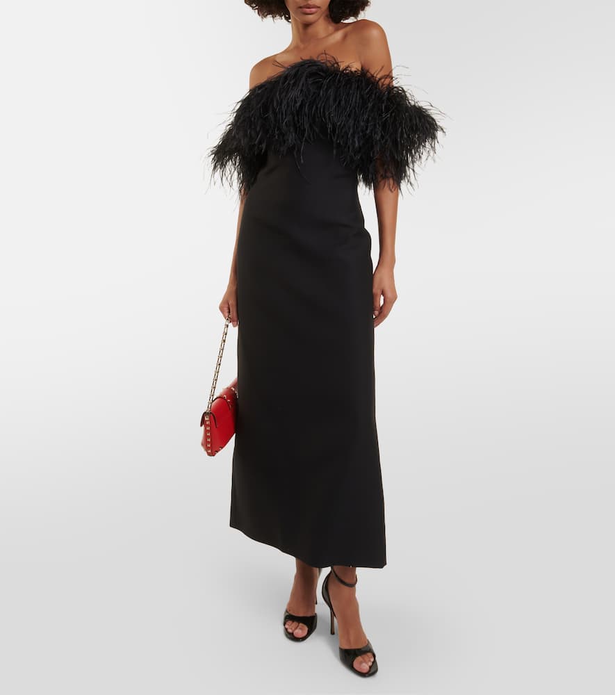 Material: 65% wool, 35% silk. Care instructions: dry clean. Made in Italy. Designer color name: Nero. Trim: 100% feathers. Contains non-textile parts of animal origin. Shop the latest Valentino Maxi Dresses for women.