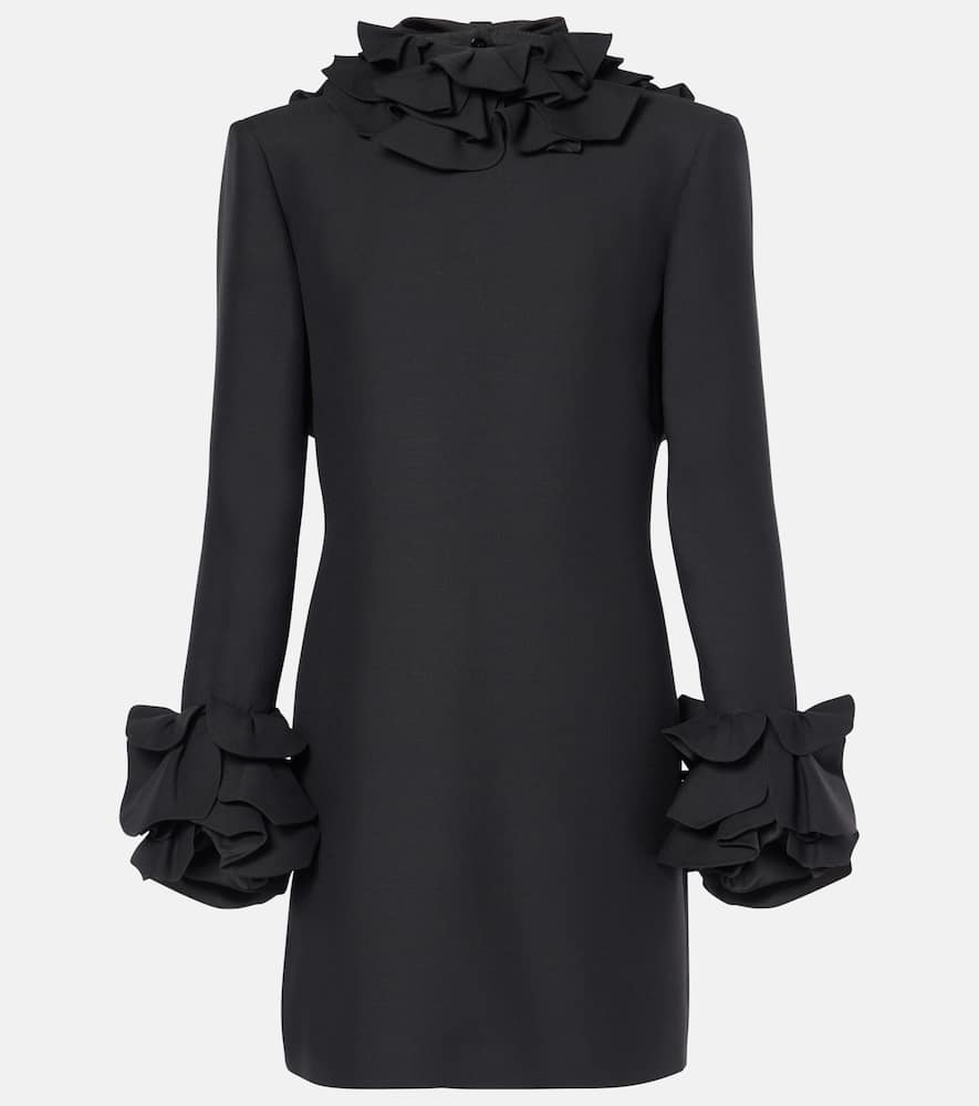 Material: 65% wool, 35% silk. Care instructions: dry clean. Made in Italy. Designer color name: Nero. Comes with garment bag. Material II: 100% silk. Lining: 100% silk. Embroidery: 65% wool, 35% silk. Contains non-textile parts of animal origin. Shop the latest Valentino Mini Dresses for women.