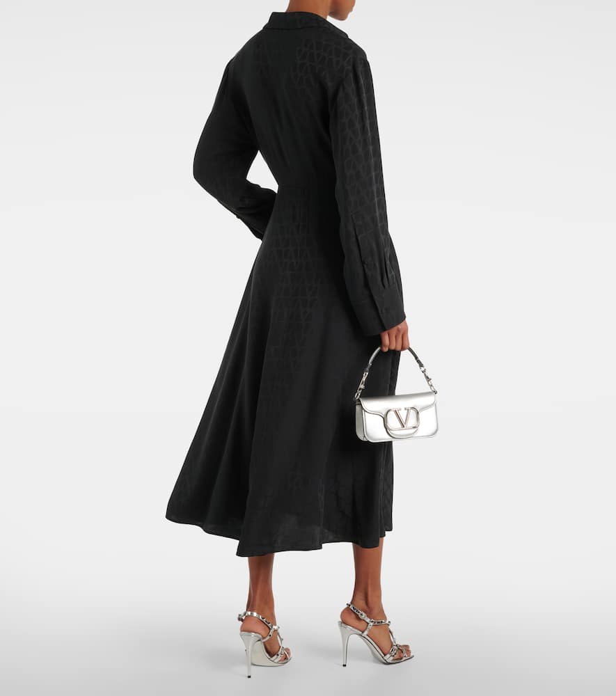 Material: 100% silk. Care instructions: dry clean. Made in Italy. Designer color name: Nero. Closure: snap-buttoned front. Shop the latest Valentino Midi Dresses for women.