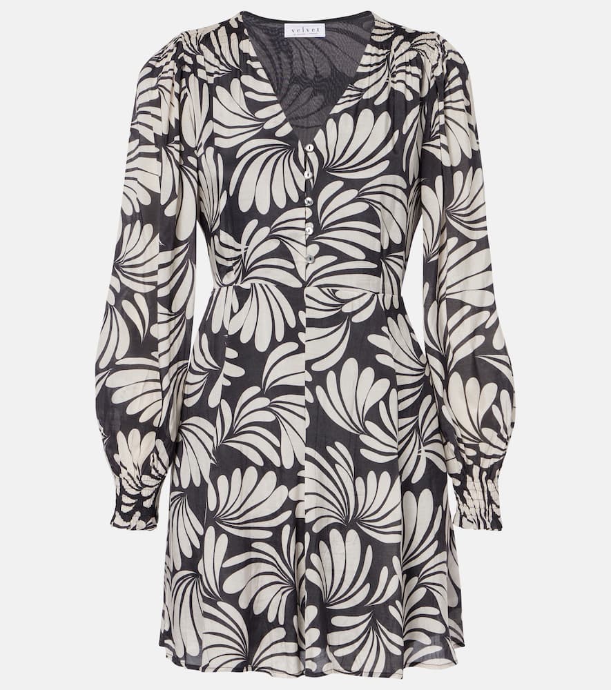 Material: 100% viscose. Care instructions: machine wash cold. Made in India. Designer color name: Black/ Cream. Closure: buttoned front. Shop the latest Velvet Mini Dresses for women.