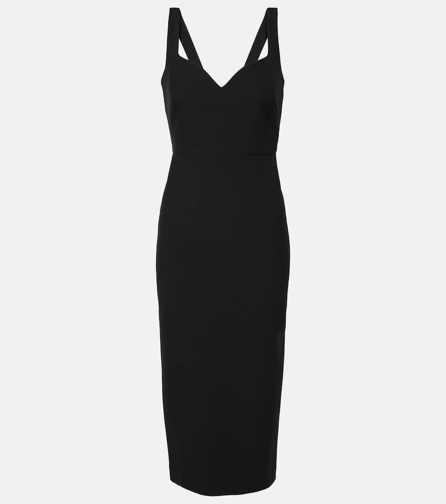 Material: 63% polyester, 27% viscose, 7% cotton, 3% elastane. Care instructions: dry clean. Made in the USA. Designer color name: Black. Lining: 100% polyester. Closure: zip and hook fastening. Shop the latest Veronica Beard Midi Dresses for women.