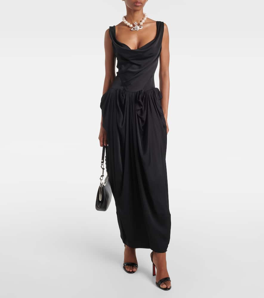 Material: 100% viscose. Care instructions: dry clean. Made in Italy. Designer color name: Black. Closure: zipped back. Shop the latest Vivienne Westwood Maxi Dresses for women.