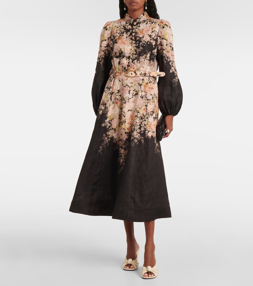 Material: 100% linen. Care instructions: dry clean. Made in China. Designer color name: Black Rococo Floral. Shop the latest Zimmermann Midi Dresses now.