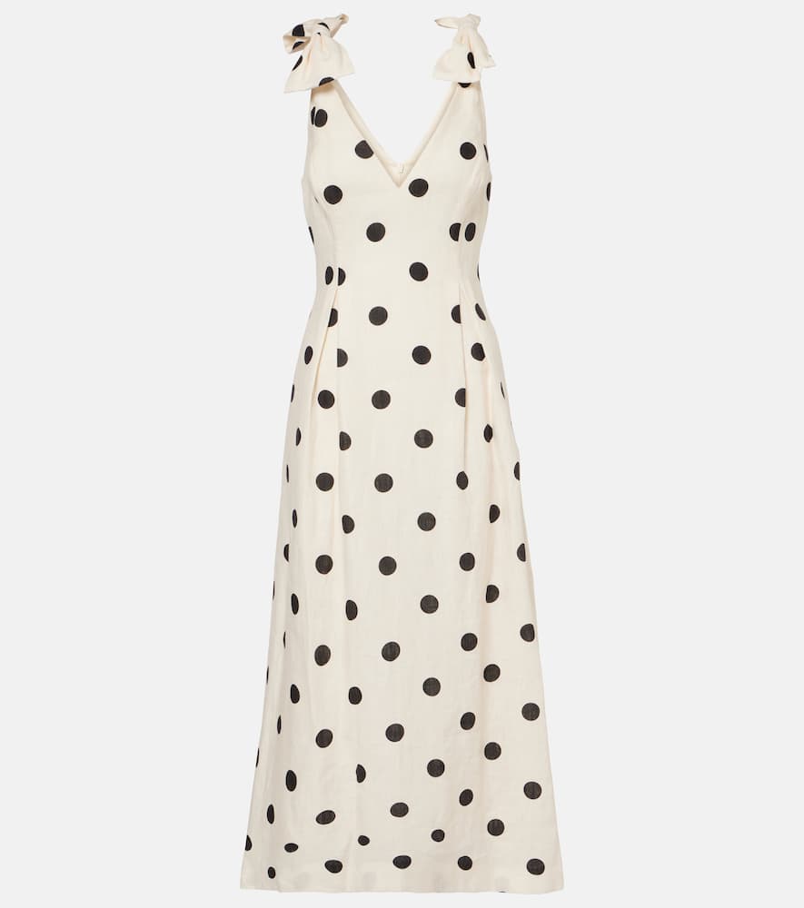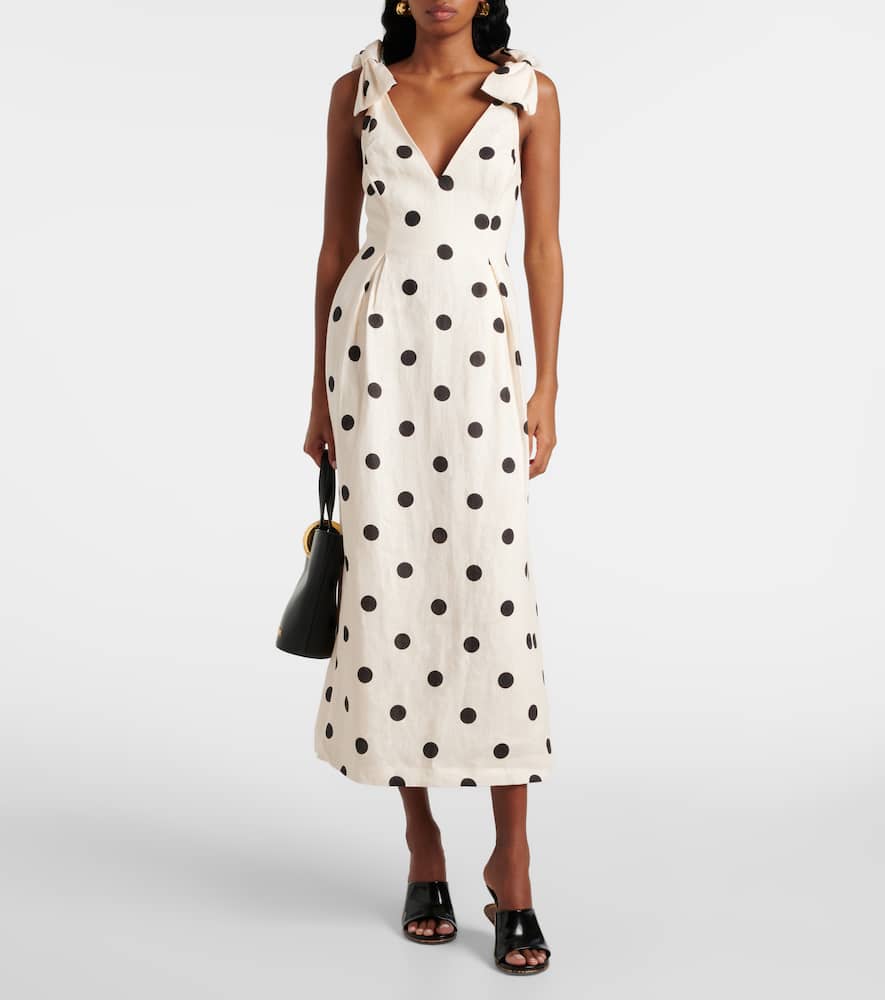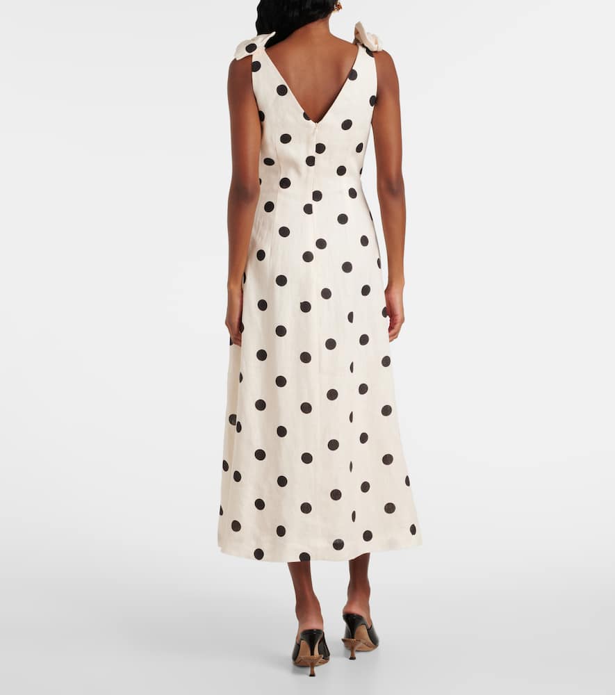 Material: 100% linen. Care instructions: dry clean. Made in China. Designer color name: Cream /Black Dot. Lining: 100% cotton. Closure: zipped back. Shop the latest Zimmermann Midi Dresses for women.