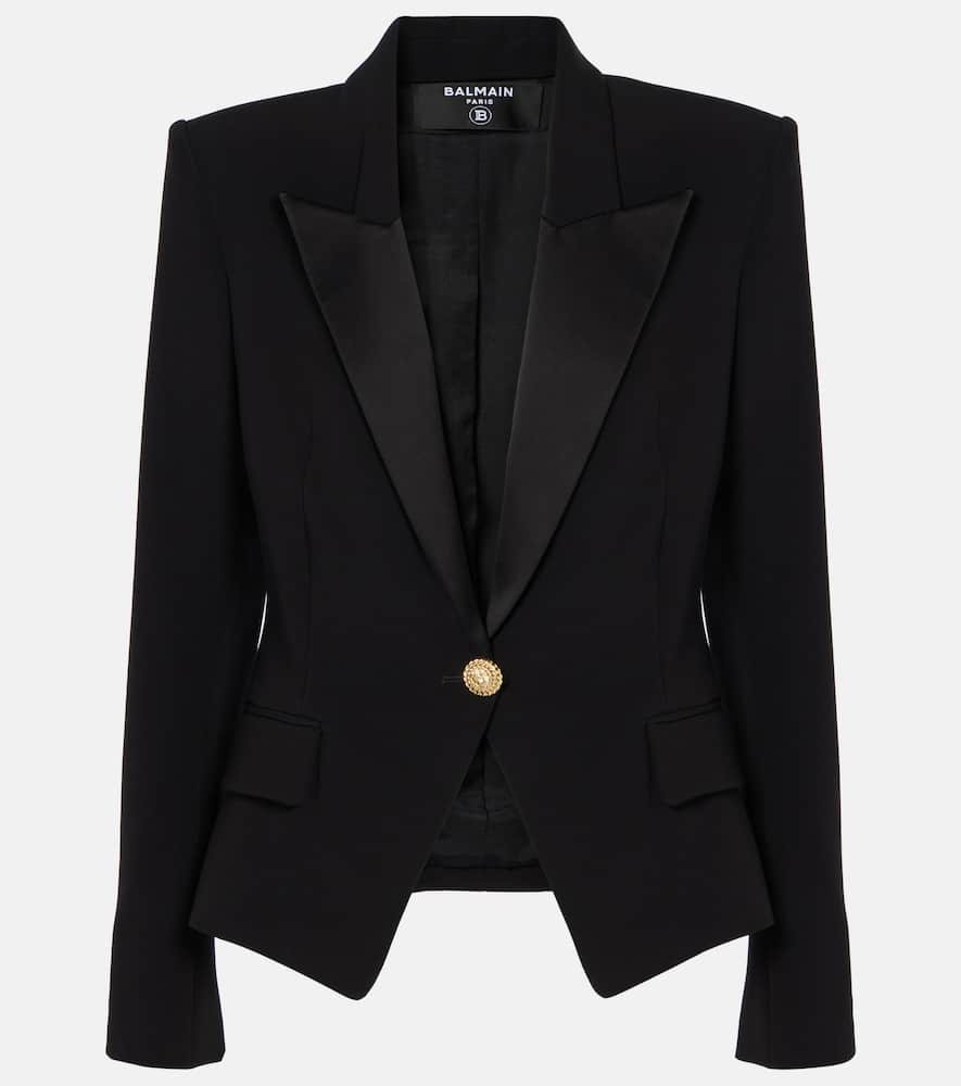 Material: 100% viscose. Care instructions: dry clean. Made in Slovakia. Designer color name: Noir. Material II: 100% viscose. Lining: 52% viscose, 48% cotton. Closure: buttoned front. Pockets: flap pockets. Shop the latest womens Balmain Blazers.