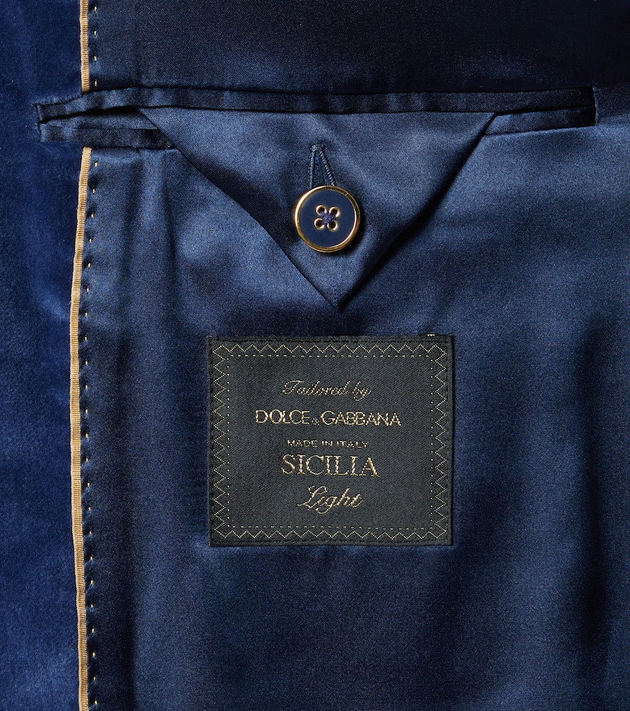 Material: 100% cotton. Care instructions: dry clean. Made in Italy. Designer color name: Blue. Closure: buttoned front. Pockets: flap pockets, breast pocket. Buttoned cuffs. Lining: 100% silk. Fully lined. Shop the latest mens Dolce&Gabbana Blazers.