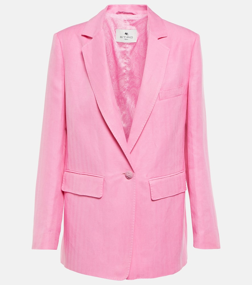 Made in Italy. Lining: 96% viscose, fully lined, 4% elastane. Care instructions: machine wash at 30 degrees. Designer color name: 1. Material: 37% silk, 63% linen. Pockets: breast pocket, flap pockets. Closure: button fastening. Shop the latest womens Etro Blazers.