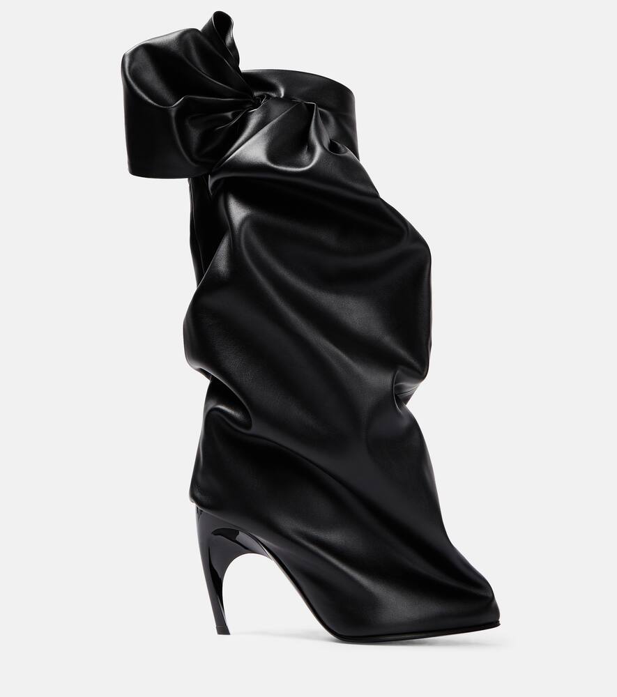 Upper: leather. Lining: leather. Sole: leather insole and sole. Toe shape: pointed toe. Made in Italy. Includes: shoe box, dust bags. Designer color name: Black/Black. Shop the latest Alexander McQueen High-Heel Boots for women now.