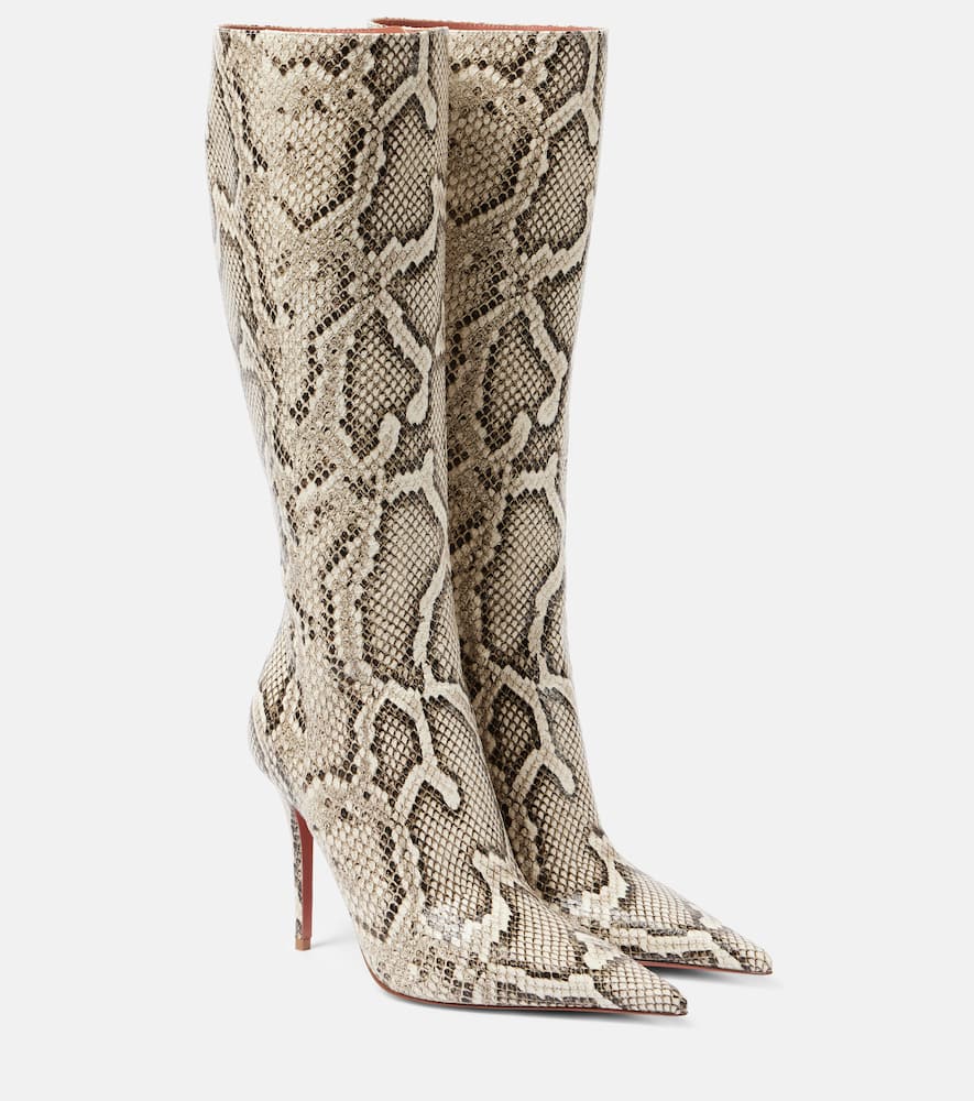 Upper: leather. Lining: leather. Sole: leather insole, leather and rubber sole. Toe shape: pointed toe. Made in Italy. Includes: shoe box, dust bag. Designer color name: Animal Print. Closure: zipped side. Shop the latest Amina Muaddi High-Heel Boots for women now.
