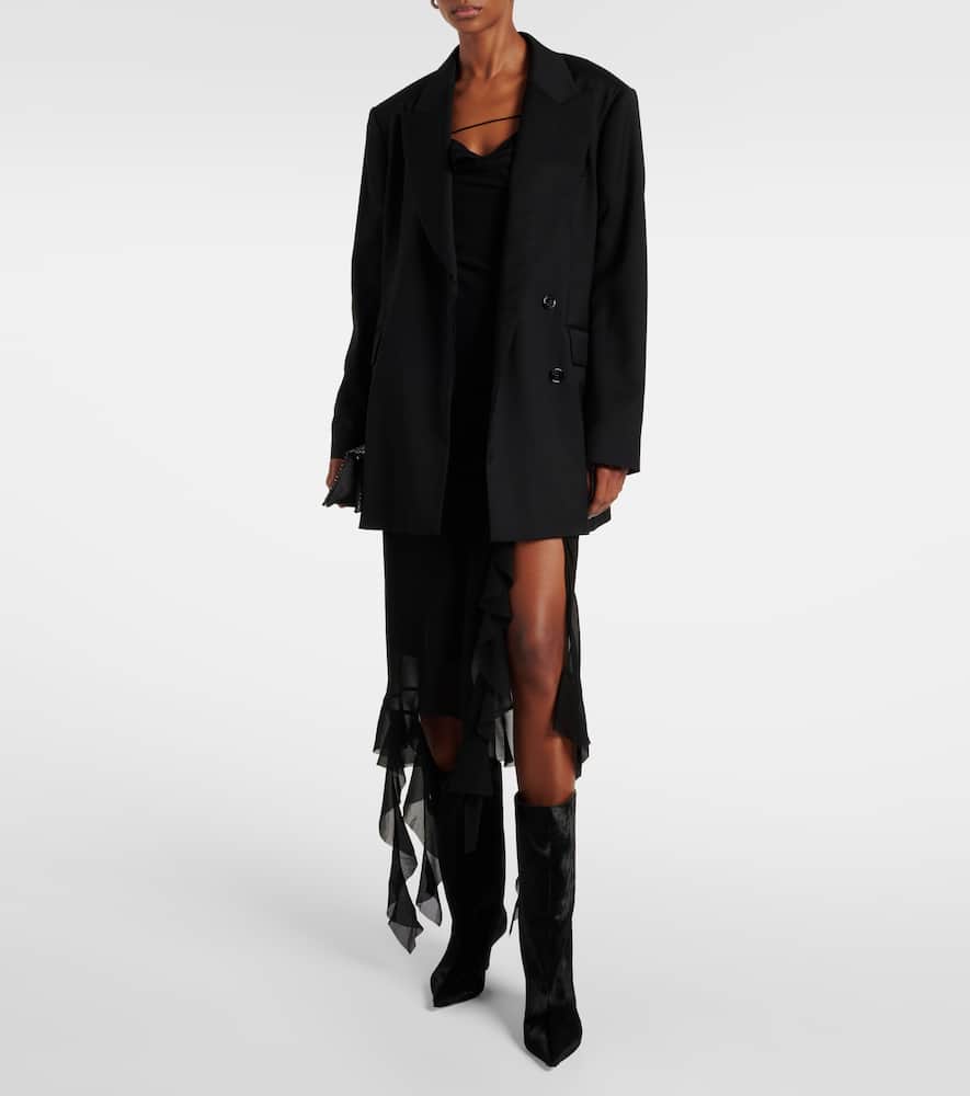 Upper: calf hair. Lining: leather. Sole: leather insole and sole. Toe shape: pointed toe. Made in Italy. Includes: shoe box. Designer color name: Black. Shop the latest Amina Muaddi Mid-Heel Boots for women now.
