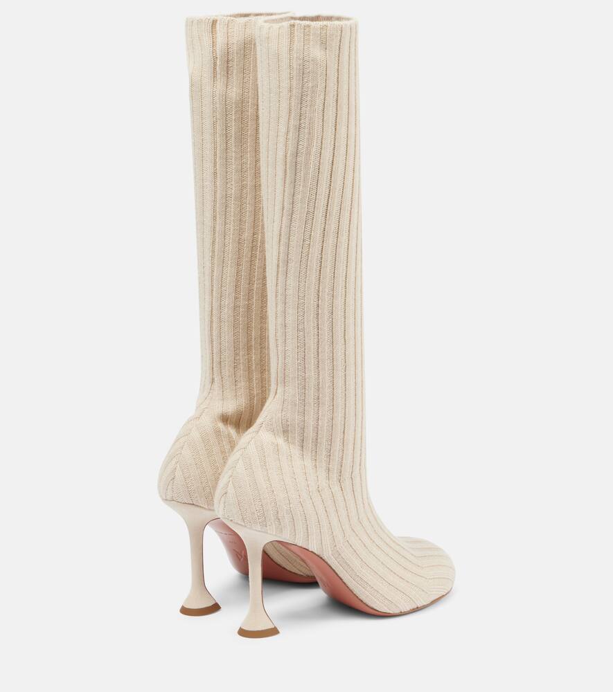 Upper: fabric. Lining: fabric. Sole: leather insole and sole. Toe shape: round toe. Made in Italy. Includes: shoe box, dust bag. Designer color name: Beige. Shop the latest Amina Muaddi High-Heel Boots for women now.