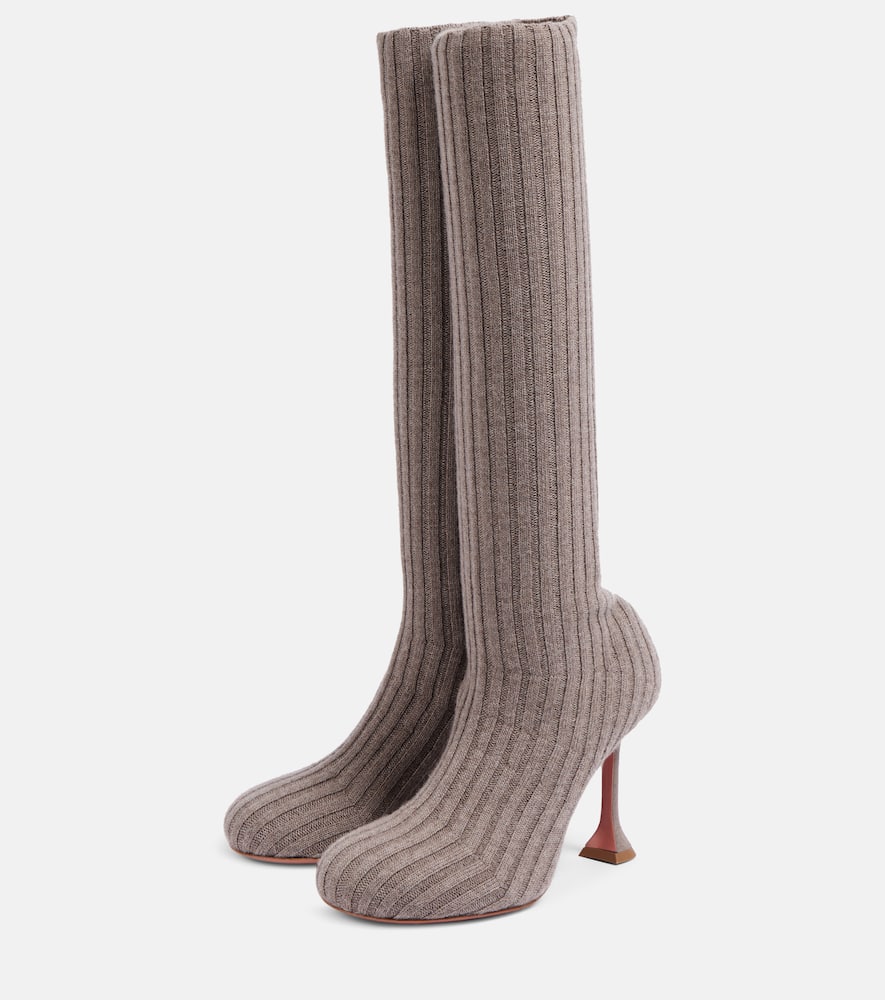 Upper: fabric. Lining: fabric. Sole: fabric insole, rubber sole. Toe shape: round toe. Made in Italy. Includes: shoe box, dust bag. Designer color name: Taupe. Trim: leather. Shop the latest Amina Muaddi Mid-Heel Boots for women now.
