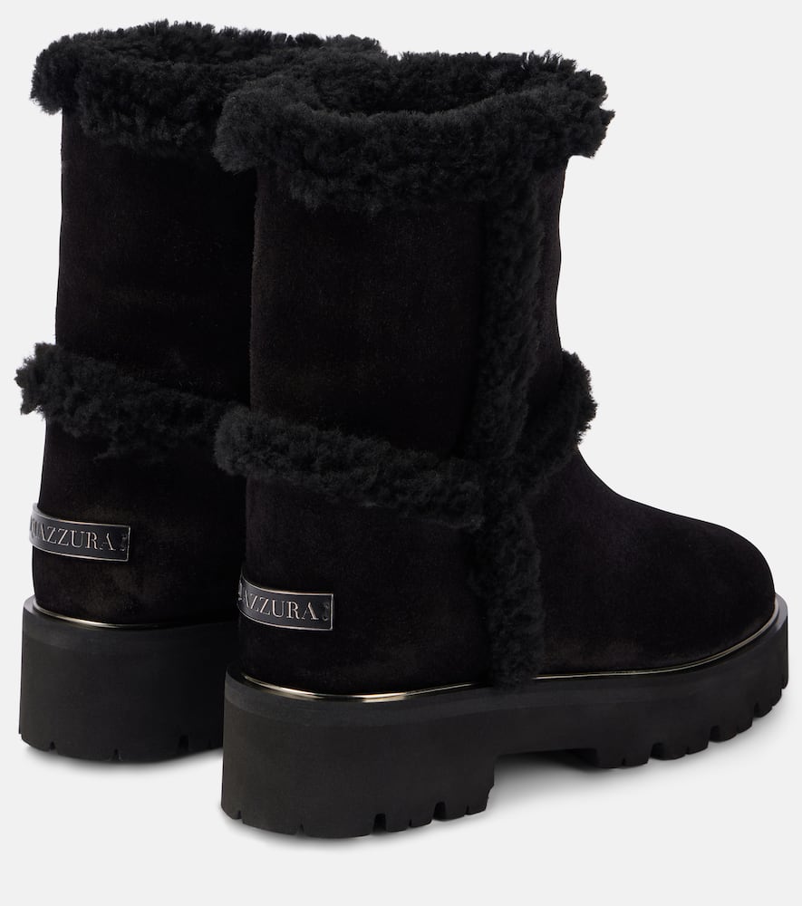 Upper: leather. Lining: leather. Sole: leather insole, rubber sole. Toe shape: round toe. Made in Italy. Includes: shoe box, dust bag. Designer color name: Black. Trim: shearling. Shop the latest Aquazzura Ankle Boots for women now.