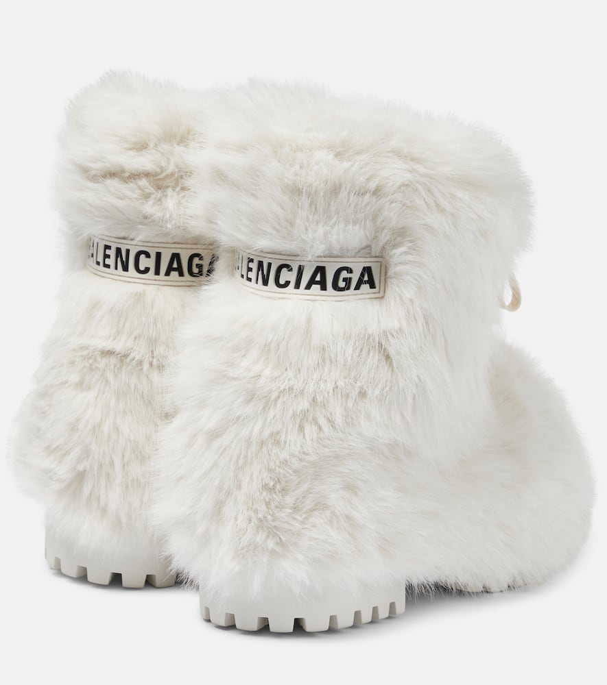 Upper: faux fur. Lining: fabric. Sole: fur insole, rubber sole. Toe shape: round toe. Made in Italy. Includes: shoe box. Designer color name: Off White. Shop the latest Balenciaga Flat Boots for women now.