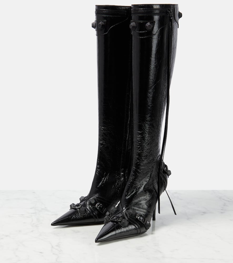 Upper: lamb leather. Lining: leather. Sole: leather insole and sole. Toe shape: pointed toe. Made in Italy. Closure: zipped side. Comes with a box. Comes with dust bags. Comes with extra heel tips. Shop the latest Balenciaga High-Heel Boots for women now.