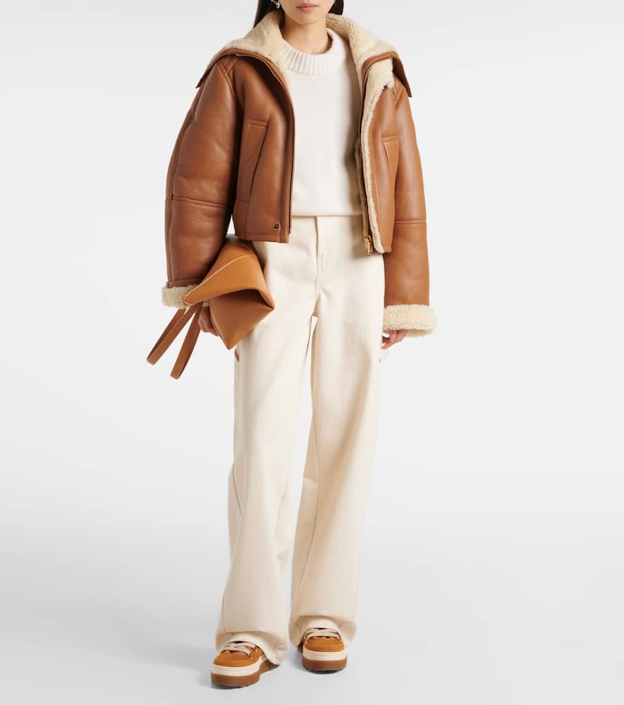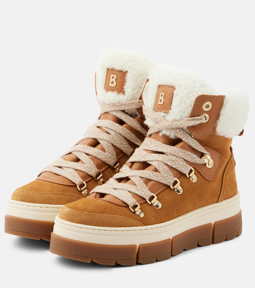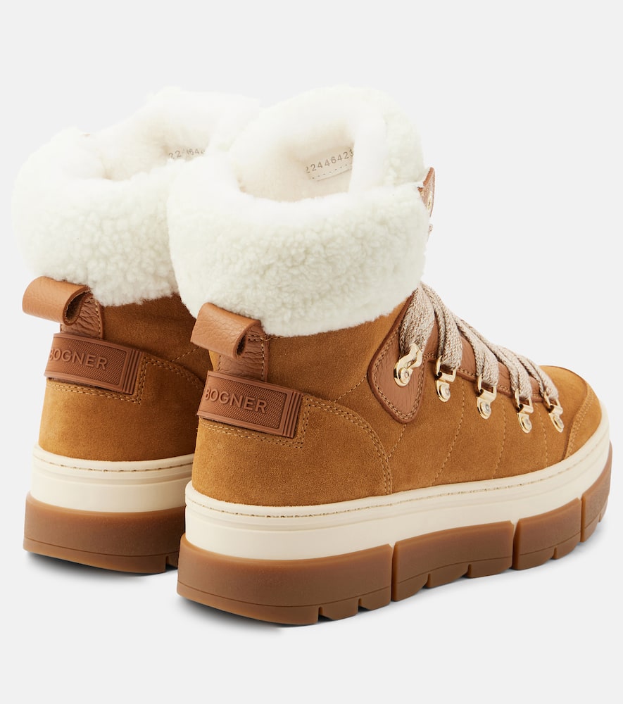Upper: leather. Lining: leather. Sole: leather insole, rubber sole. Toe shape: round toe. Made in Italy. Includes: dust bag, shoe box. Designer color name: Cognac. Trim: shearling. Closure: lace-up. Shop the latest Bogner Flat Boots for women now.