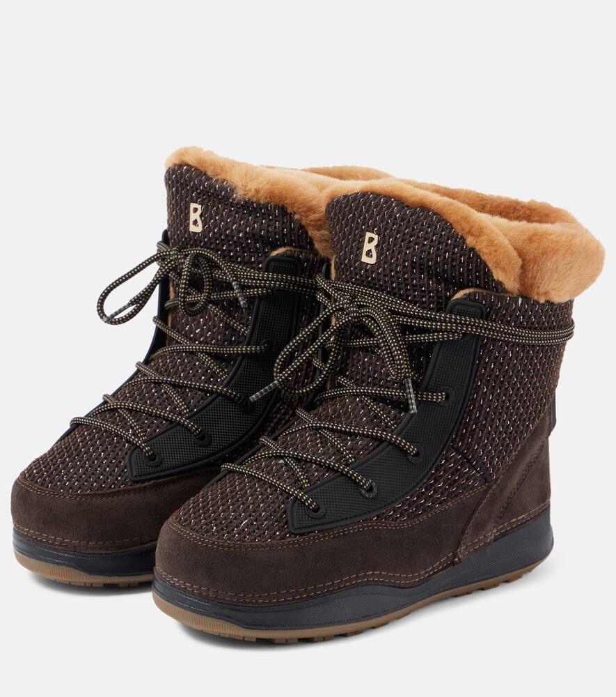Upper: leather, fabric. Lining: fabric. Sole: fabric insole, rubber sole. Toe shape: round toe. Made in Italy. Includes: shoe box. Designer color name: Dark. Trim: suede. Closure: lace-up. Shop the latest Bogner Ankle Boots for women now.