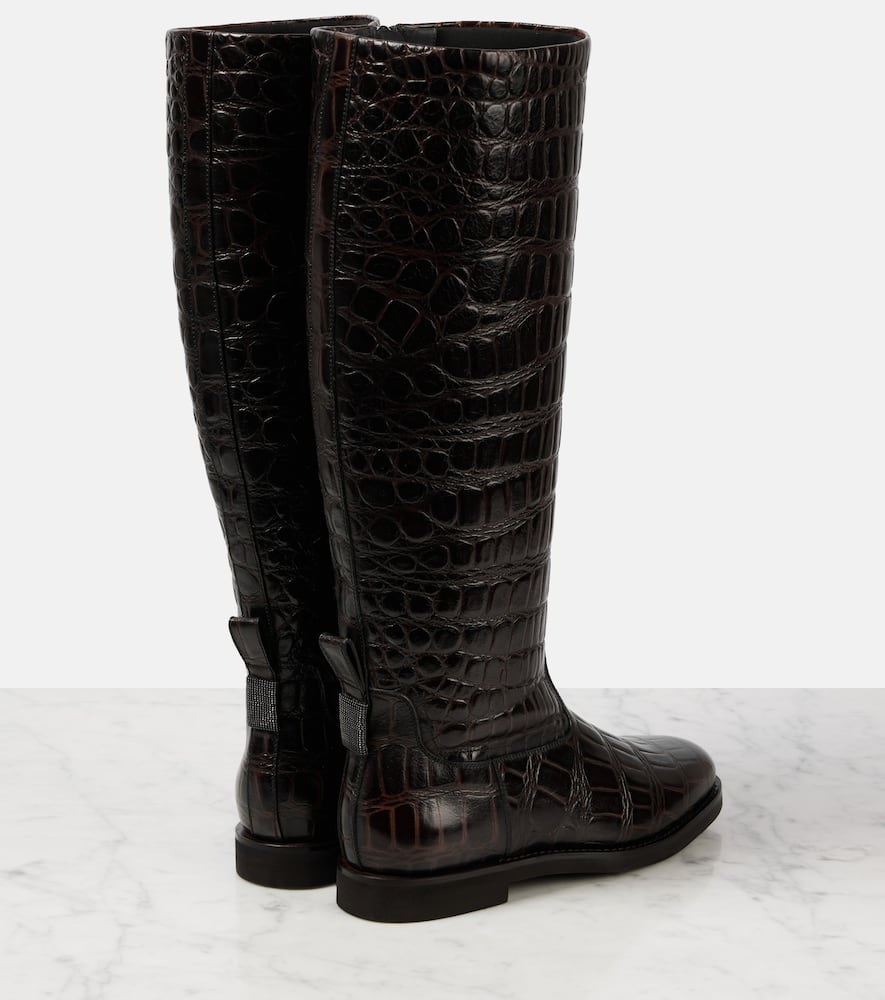 Upper: leather. Lining: leather. Sole: leather insole, rubber sole. Toe shape: almond toe. Made in Italy. Includes: shoe box. Designer color name: Brown. Closure: zipped side. Shop the latest Brunello Cucinelli Flat Boots for women now.