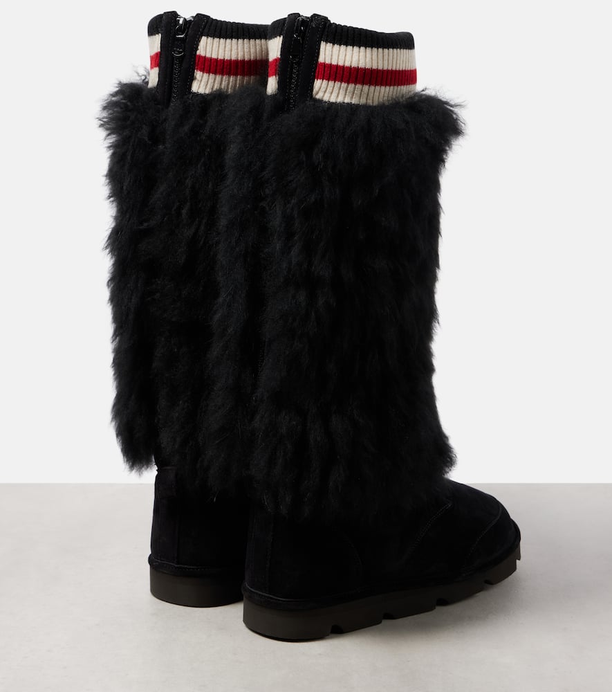 Upper: shearling, leather. Lining: leather. Sole: leather insole, rubber sole. Toe shape: round toe. Made in Italy. Includes: dust bags, shoe box. Designer color name: Nero. Closure: lace-up. Shop the latest Brunello Cucinelli Flat Boots for women now.