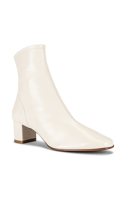 BY FAR Sofia Bootie in Ivory. - size 35 (also in 39) BY FAR Sofia Bootie in Ivory. - size 35 (also in 39) Leather upper with sole. Made in Bulgaria. Side zipper closure. Round toe. Approx 40mm/ 1.5 inch heel Approx 180mm/ 7 inch shaft. BFAR-WZ19. 16603-05-SWHTL. BY FAR is a designer lifestyle brand that reimagines timeless silhouettes for the cool city girl. Founded in 2016 by Valentina Ignatova, Sabina Gyosheva and Denitsa Bumbarova, the brand quickly established itself as the core accessory to any off-duty uniform with its nostalgic baguette bags, sleek boots, and minimalist, barely-there sandals. Built on fine craftsmanship and responsibly-sourced materials, each BY FAR collection delivers effortlessly chic, authentic, and comfortable style. Shop the latest in fashion from BY FAR