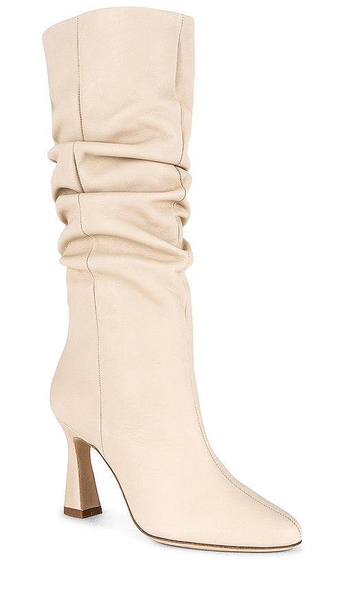 Chelsea Paris Squeen Boot in Nude. - size 35 (also in 39, 41) Chelsea Paris Squeen Boot in Nude. - size 35 (also in 39, 41) Ruched leather upper, lining, and sole. Made in Portugal. Pull-on styling. Almond toe. Angled heel. Approx 90mm/ 3.5 inch heel Approx 305mm/ 12 inch shaft Shaft measures approx 13.4 in circumference. CRIX-WZ23. 22A22904. Shop the latest in fashion from Chelsea Paris