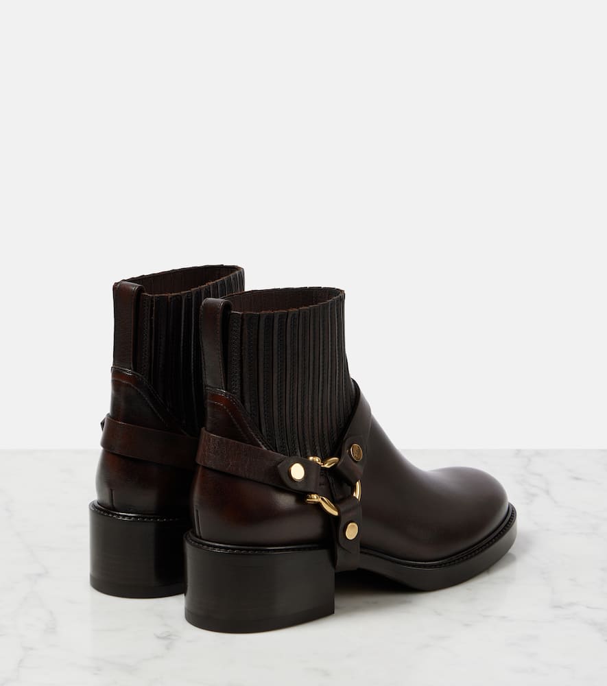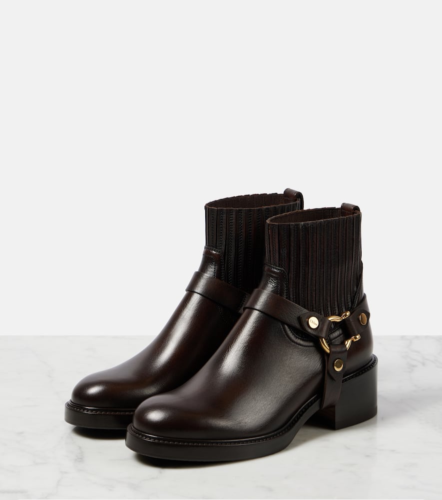 Upper: leather. Lining: leather. Sole: leather insole, leather and rubber sole. Toe shape: almond toe. Made in Italy. Includes: shoe box, dust bag. Designer color name: Oak Brown. Hardware color: gold. Shop the latest Chloe Mid-Heel Boots for women now.