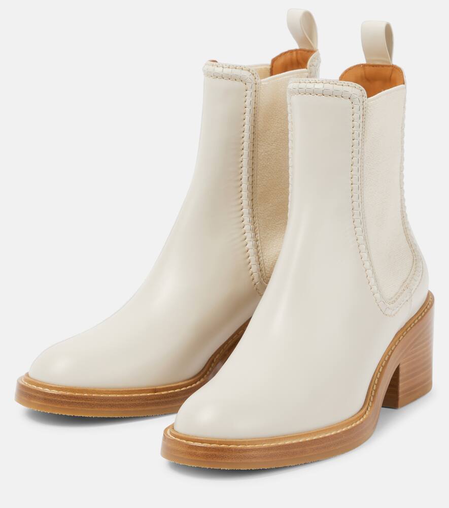 Lining: leather. Sole: leather insole, rubber sole. Toe shape: round toe. Comes with a box. Made in Italy. Designer color name: Eggshell. Comes with dust bag. Upper: leather. Trim: fabric. Closure: elasticated sides. Shop the latest Chloe Chelsea Boots for women now.
