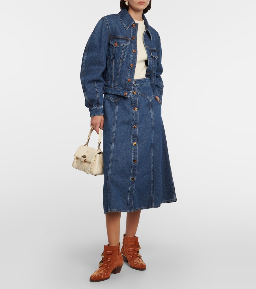 Upper: calf leather. Lining: leather. Sole: leather insole, leather and rubber sole. Toe shape: almond toe. Made in Italy. Includes: shoe box, dust bags. Designer color name: Ochre Delight. Closure: zipped side. Shop the latest Chloe Mid-Heel Boots for women now.