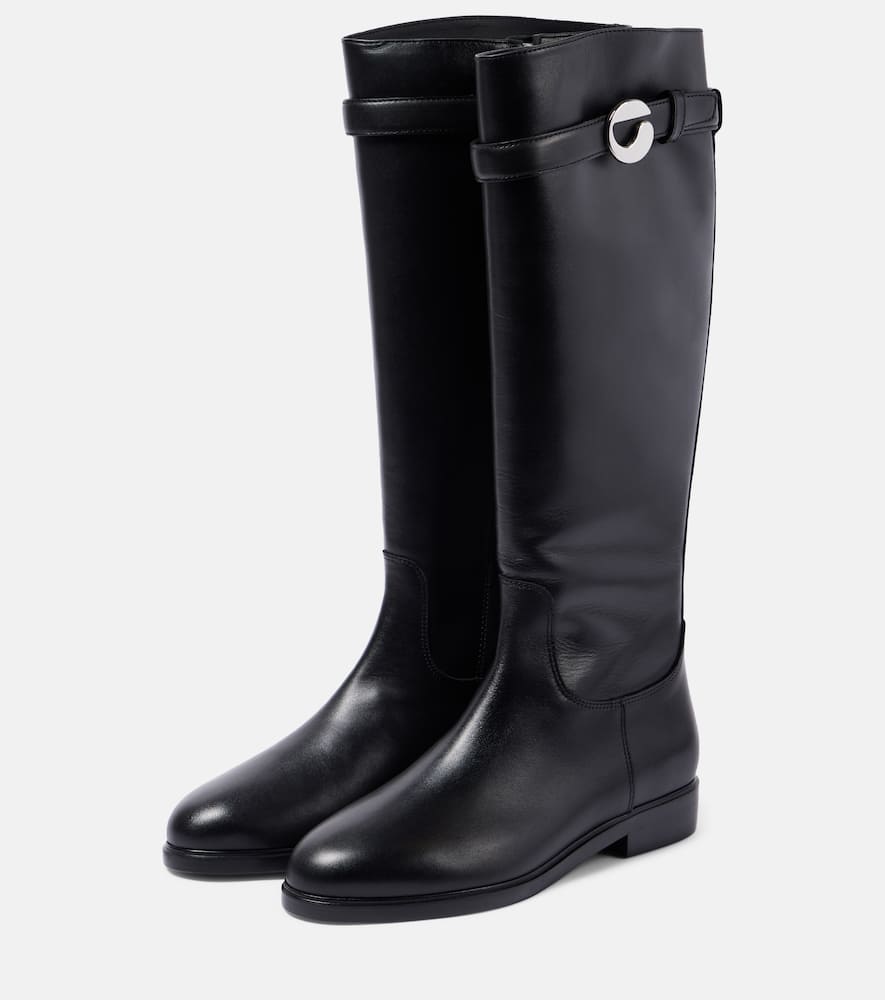 Upper: leather. Lining: leather. Sole: leather insole and sole. Toe shape: almond toe. Made in Spain. Includes: shoe box, dust bag. Designer color name: Black. Hardware color: silver. Closure: zipped side, buckle fastening. Shop the latest Coperni Flat Boots for women now.