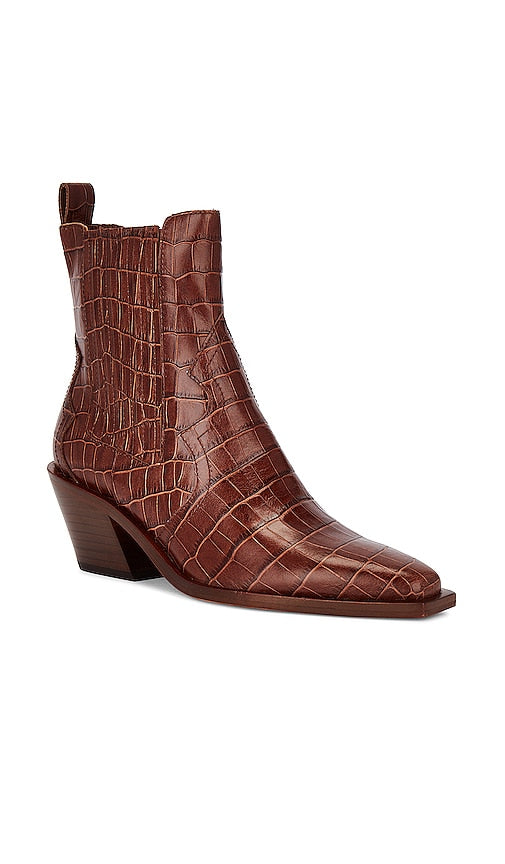 Dolce Vita Senna Bootie in Brick. - size 6 (also in 6.5, 8.5, 9.5) Dolce Vita Senna Bootie in Brick. - size 6 (also in 6.5, 8.5, 9.5) Croc-embossed leather upper with manmade sole. Made in China. Pull-on styling with elastic side panels. Pointed toe. Angled block heel. Approx 57mm/ 2.25 inch heel Approx 140mm/ 5.5 inch shaft. DOLC-WZ1197. SENNA. Dolce Vita exudes a hip and trendy vibe inspired by Southern California's most stylish and in-the-know trendsetters. The collection exudes effortless cool and Dolce Vita is always on the pulse of the hottest new trends; setting many of their own. In Dolce Vita shoes, you'll always be wearing the most spectacular styles in the hottest colors and silhouettes. Shop the latest in fashion from Dolce Vita