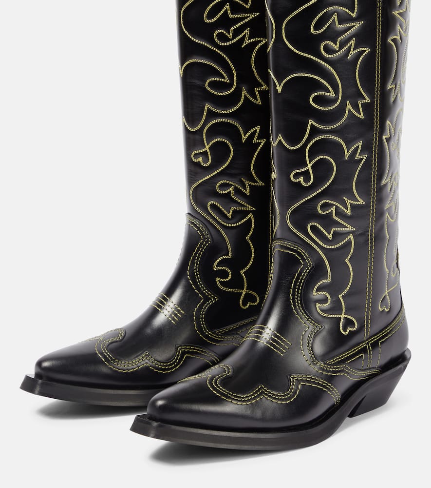 Lining: leather. Sole: leather insole, rubber sole. Upper: calf leather. Toe shape: pointed toe. Made in Portugal. Designer color name: Black/Yellow. Comes with a box. Comes with dust bag. Shop the latest Ganni Mid-Heel Boots for women now.
