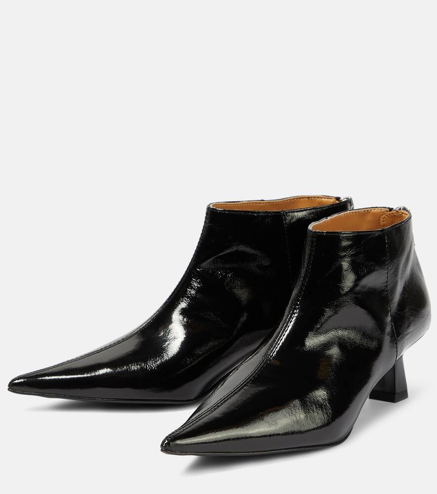 Upper: faux leather. Lining: faux leather. Sole: faux leather insole, rubber sole. Toe shape: pointed toe. Made in Spain. Designer color name: Black. Closure: zipped back. Comes with dust bag. Comes with a box. Shop the latest Ganni Ankle Boots for women now.