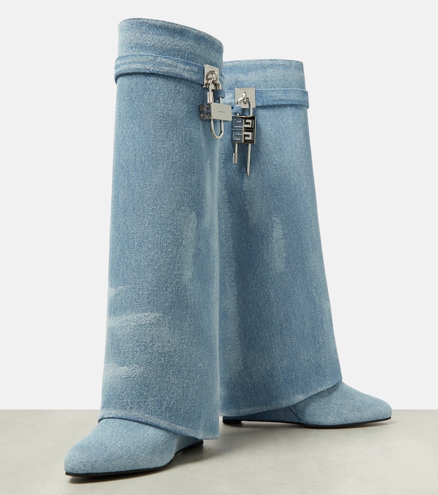 Upper: fabric. Lining: leather. Sole: leather insole and sole. Toe shape: pointed toe. Made in Italy. Includes: shoe box, dust bags. Designer color name: Medium Blue. Hardware color: silver. Shop the latest Givenchy Mid-Heel Boots for women now.