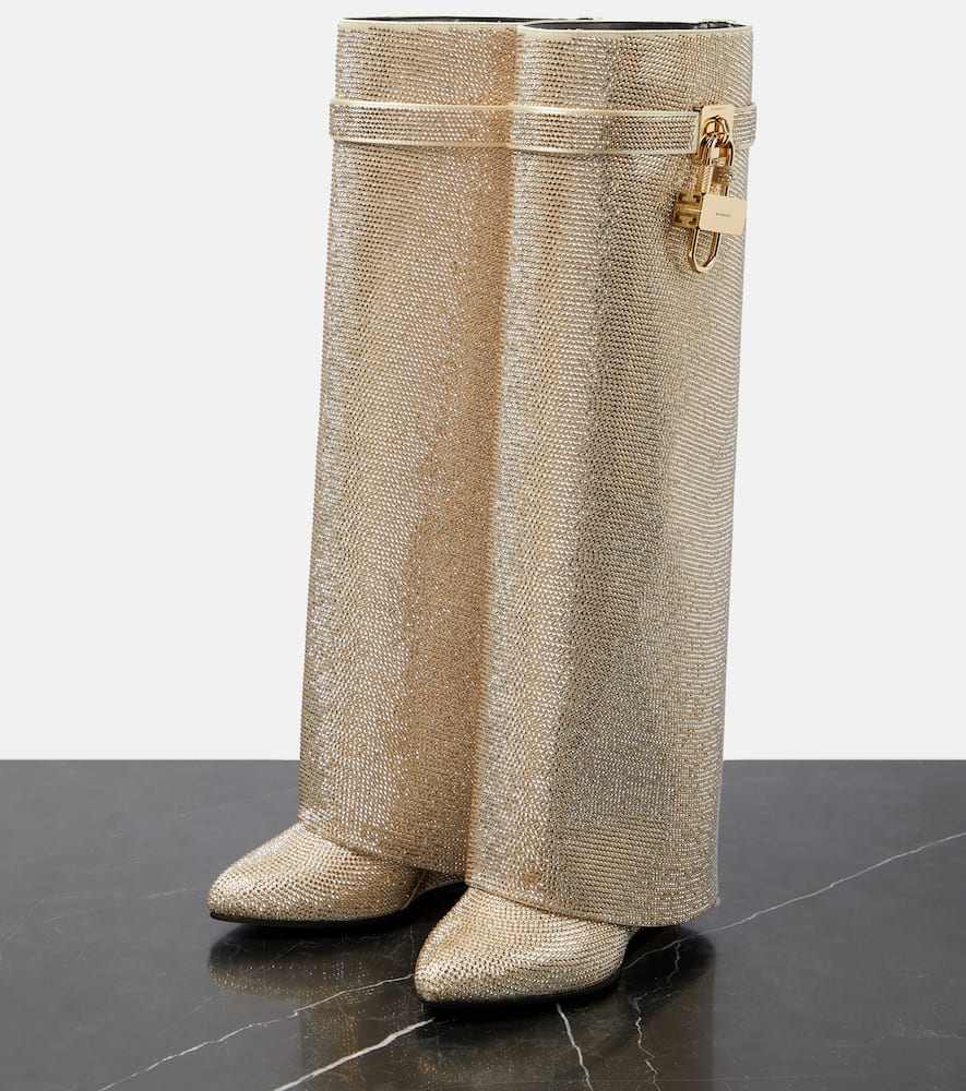 Upper: fabric. Lining: fabric. Sole: leather insole, rubber sole. Toe shape: pointed toe. Made in Italy. Includes: shoe box, dust bags. Designer color name: Blond. Hardware color: gold. Shop the latest Givenchy High-Heel Boots for women now.