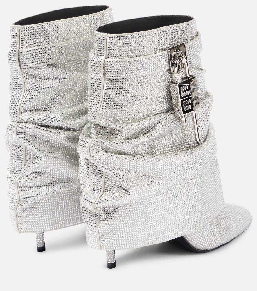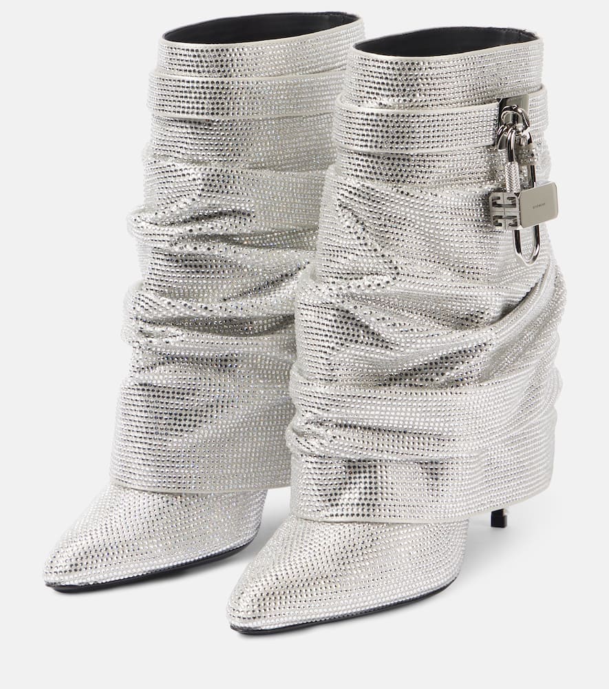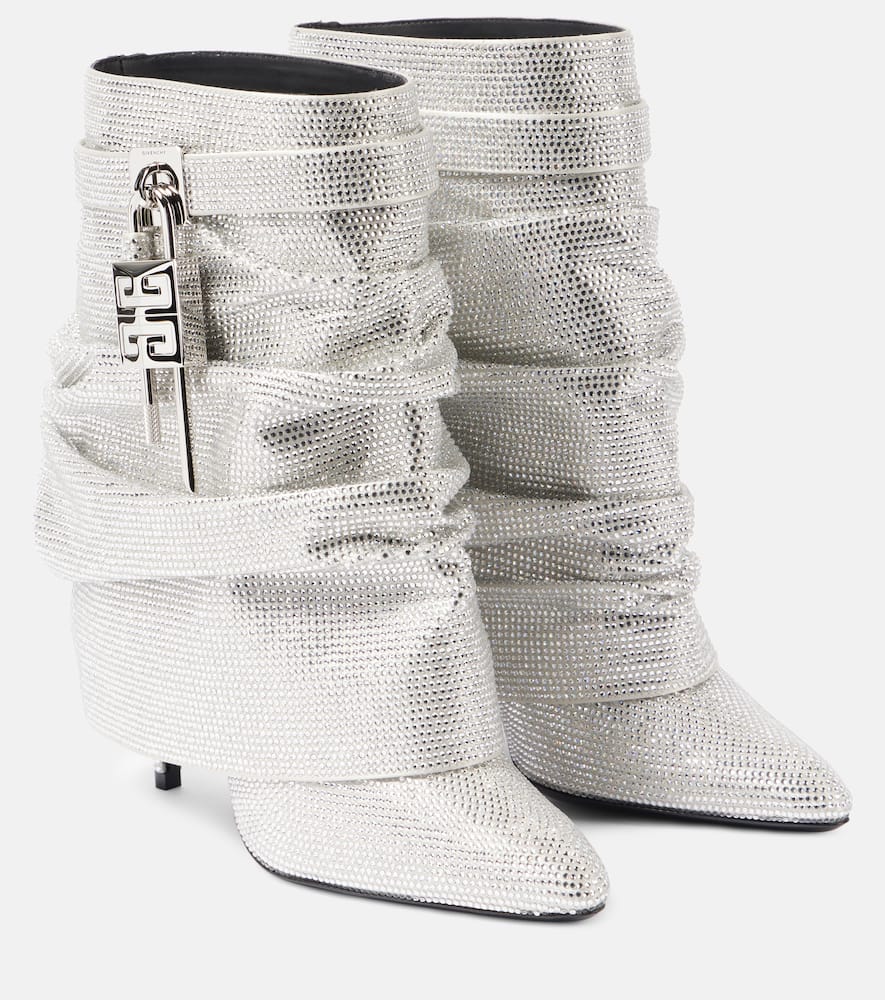 Upper: fabric. Lining: leather. Sole: leather insole and sole. Toe shape: pointed toe. Made in Italy. Includes: shoe box, dust bag. Designer color name: 040-Silvery. Hardware color: silver. Shop the latest Givenchy Ankle Boots for women now.