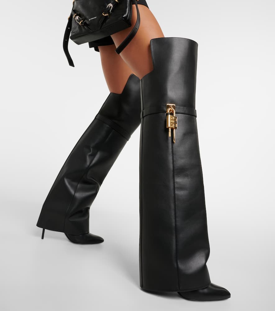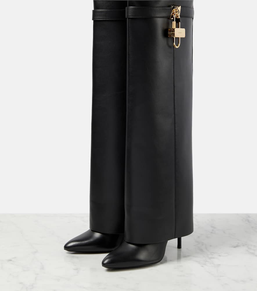 Upper: leather. Lining: leather. Sole: leather insole and sole. Toe shape: pointed toe. Made in Italy. Includes: dust bags, shoe box. Designer color name: Black. Hardware color: gold. Shop the latest Givenchy High-Heel Boots for women now.